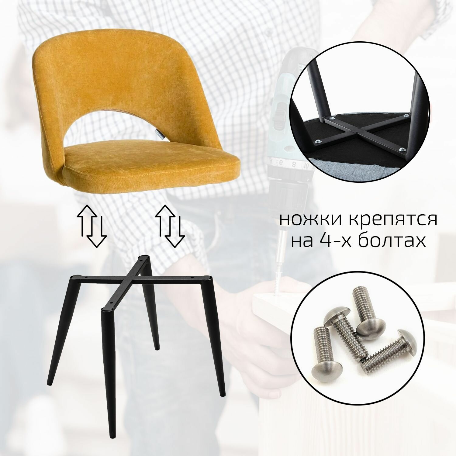 Стул для кухни премиум, стул кухонный Hugs Желтый + Черные ножки