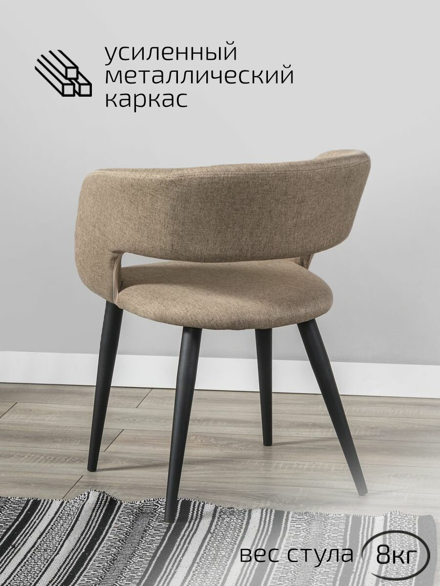 Стул кухонный премиум, стул на кухню мягкий со спинкой Oscar темно-бежевый + черные ножки