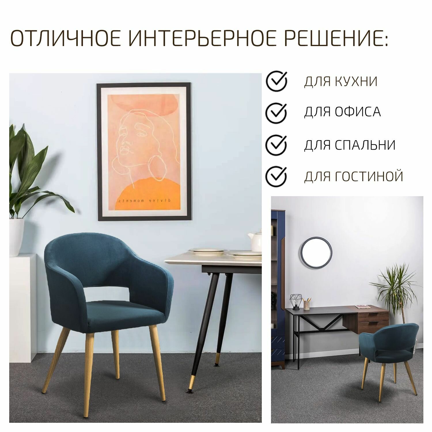 Стул кухонный, стул на кухню мягкий со спинкой Oscar синий + ножки дуб
