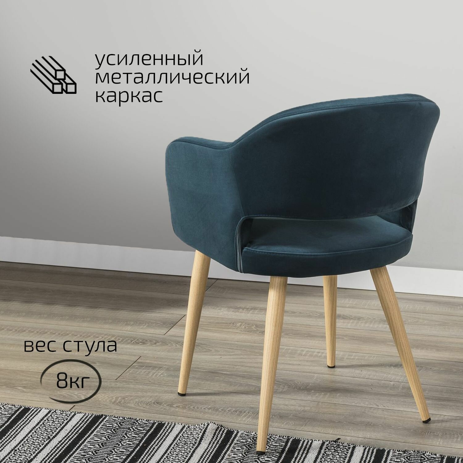 Стулья для кухни премиум комплект 2 шт, стул кухонный мягкий со спинкой Oscar синий + ножки дуб