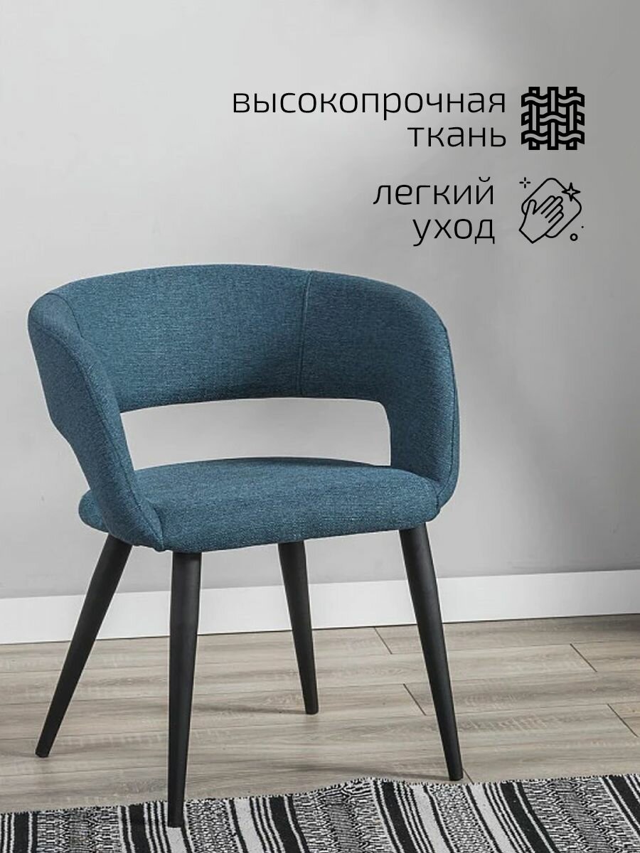 Стул для кухни премиум, стул кухонный Hugs Синий + Черные ножки