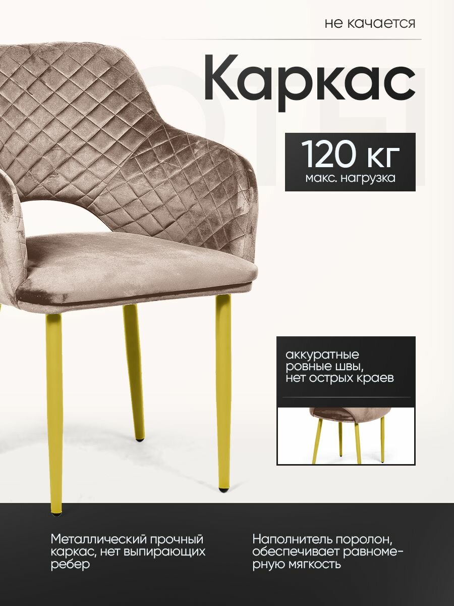 СохранитьСтулья для кухни комплект 4 шт, с подлокотниками, велюр, светло-коричневые, набор стульев для кухни 4, с золотыми ножками. интересное: