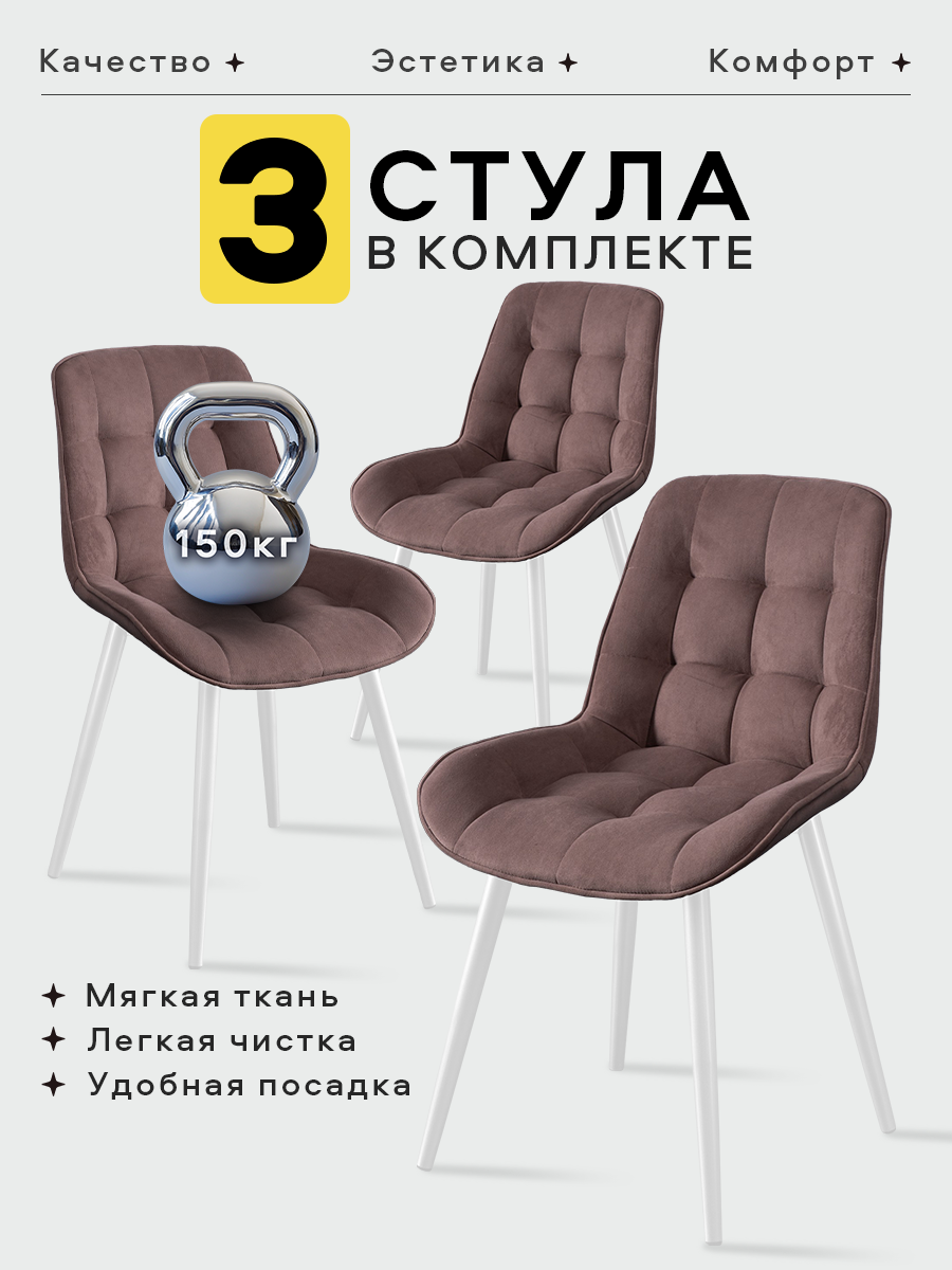 Стулья мягкие от Lussor Румба, для кухни, 3 шт, коричневый с белыми ножками интересное: