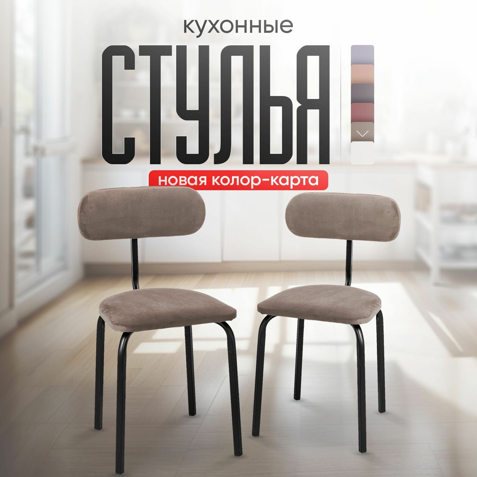 Стулья для кухни STULER chairs Комплект мягких стульев Nova 2 шт, велюр Коричнево-серый, черные матовые ножки интересное:
