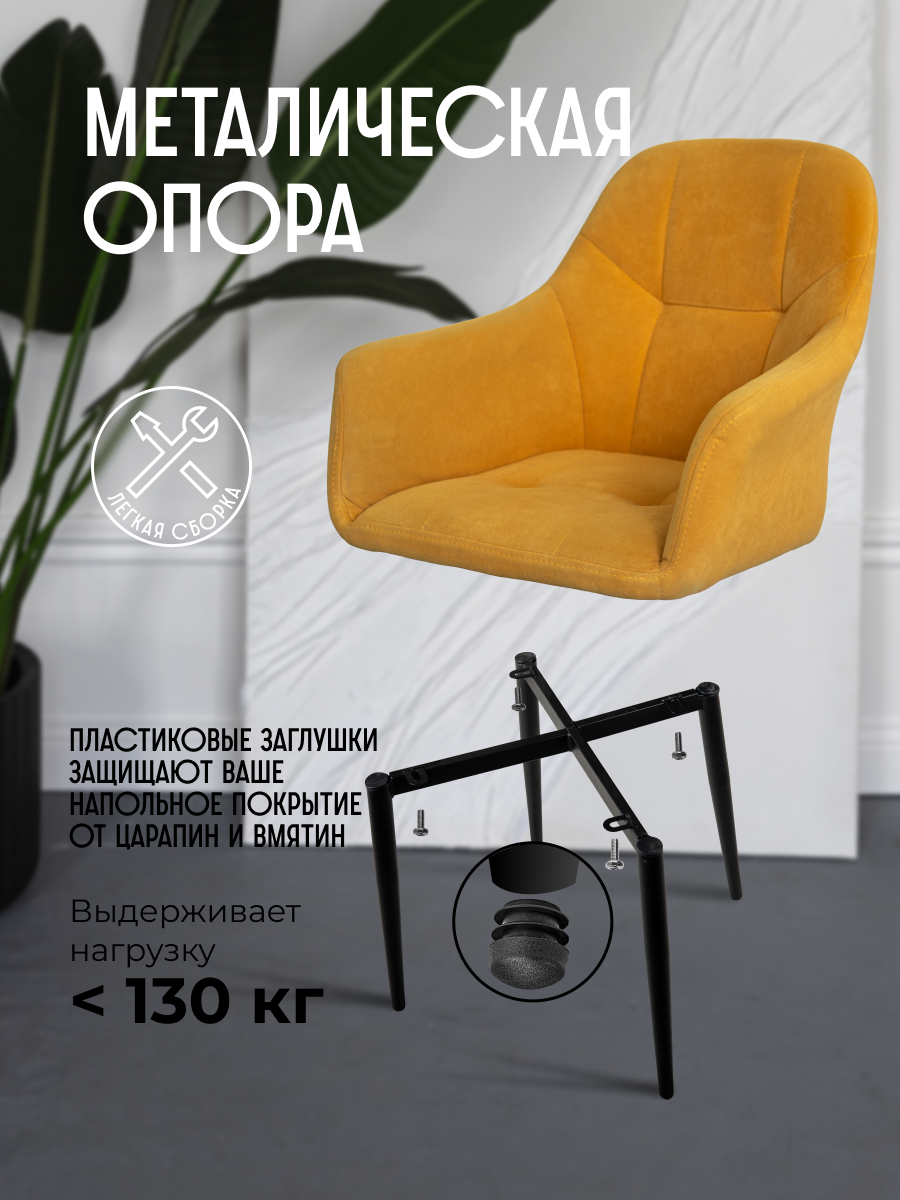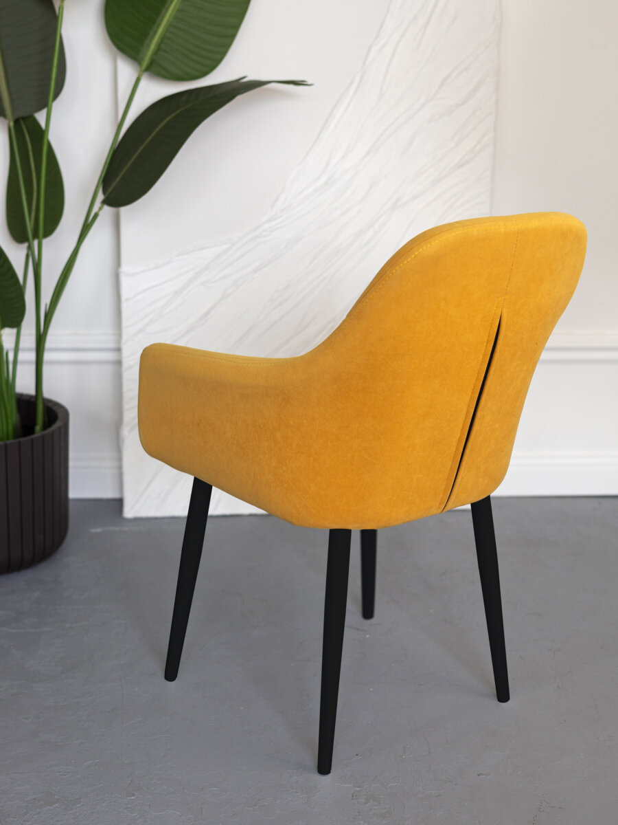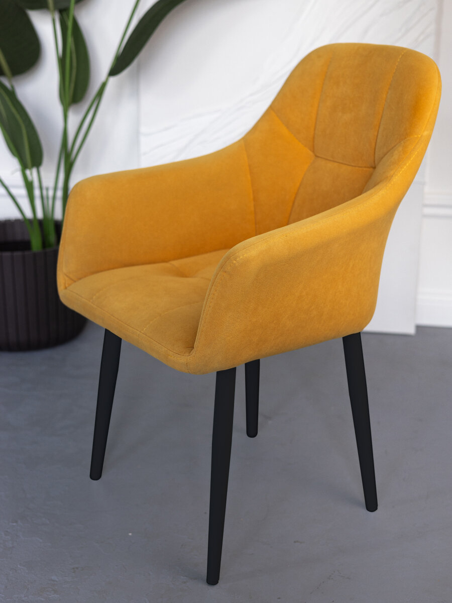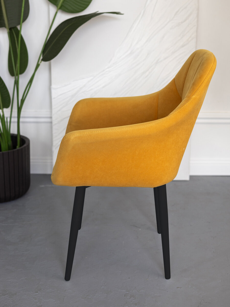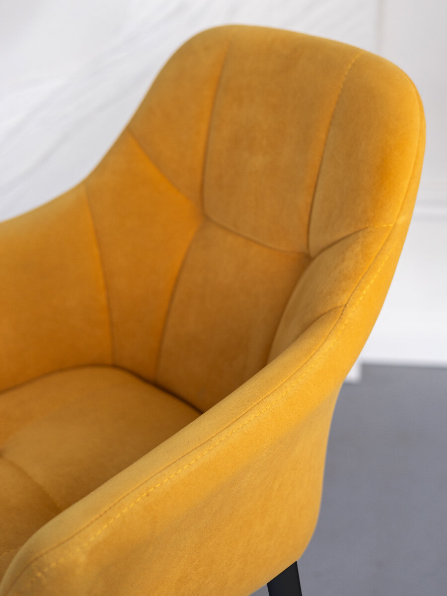 Купить Стул для кухни мягкий на металлокаркасе желтый со спинкой и подлокотниками интерьерный VVdom