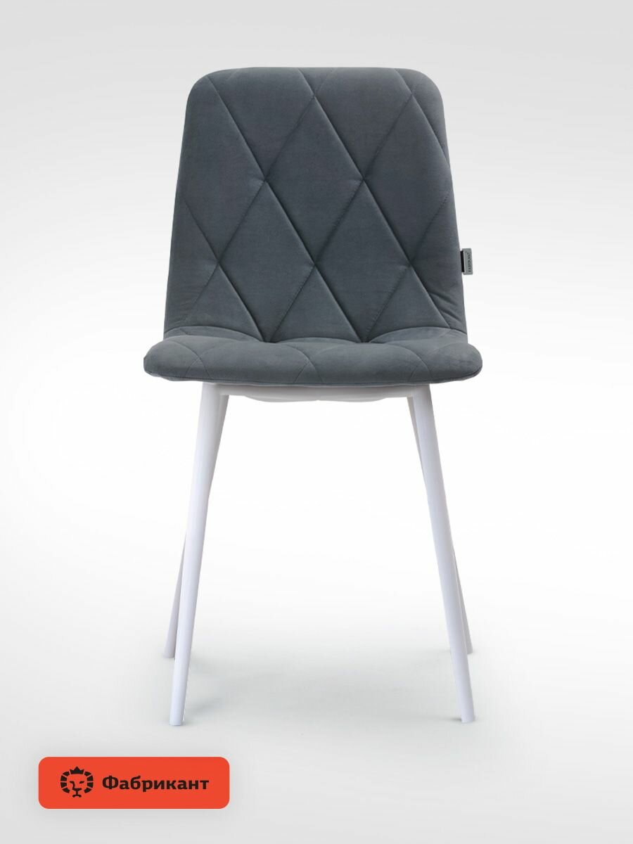 Купить Стулья для кухни Фабрикат Ричи мягкие со спинкой, велюр тёмно-серый, белые ножки, 4 шт.