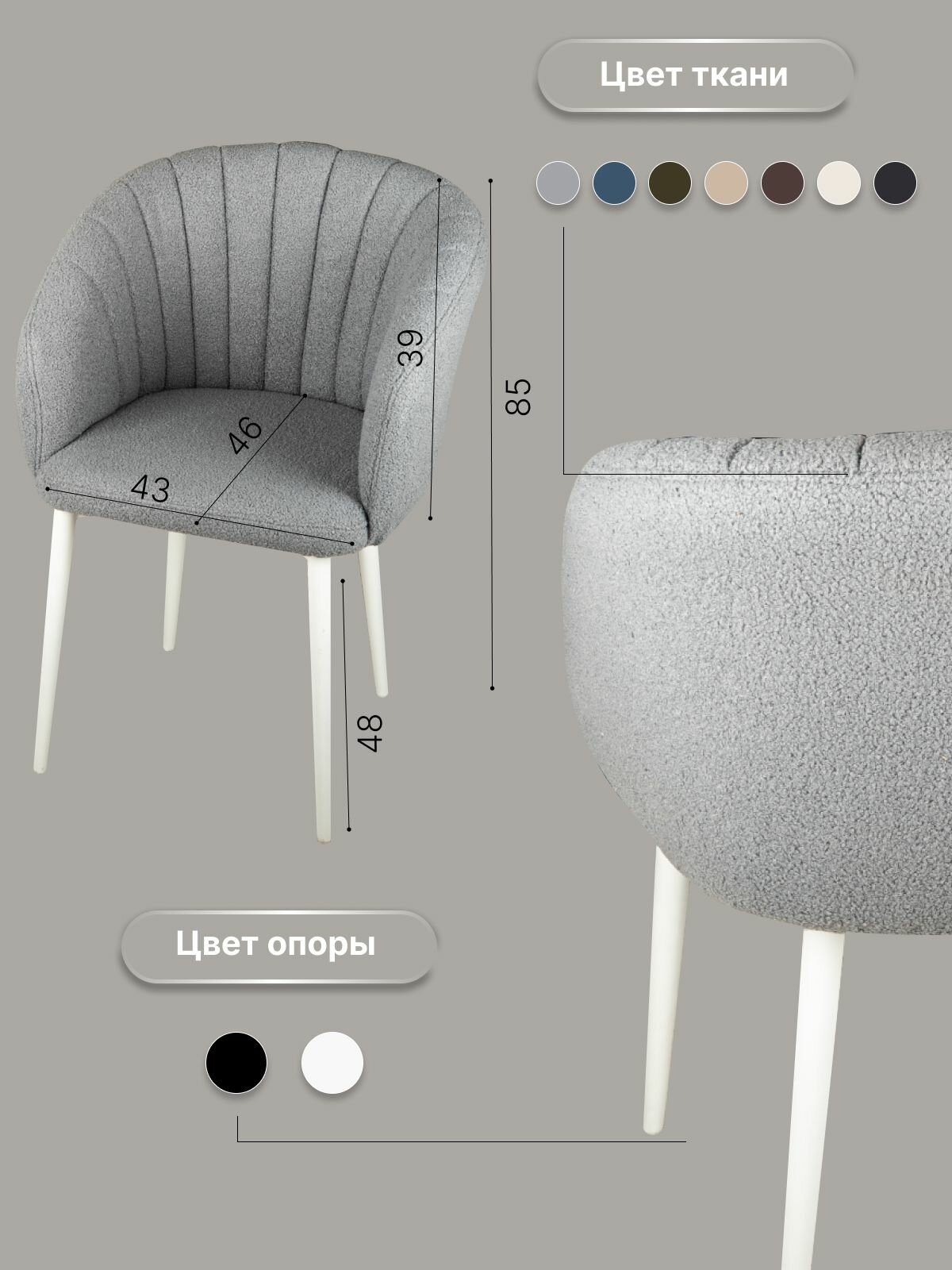 Купить Стул "Венера" У Стулыча, 1 шт, Букле, серый, белые ножки