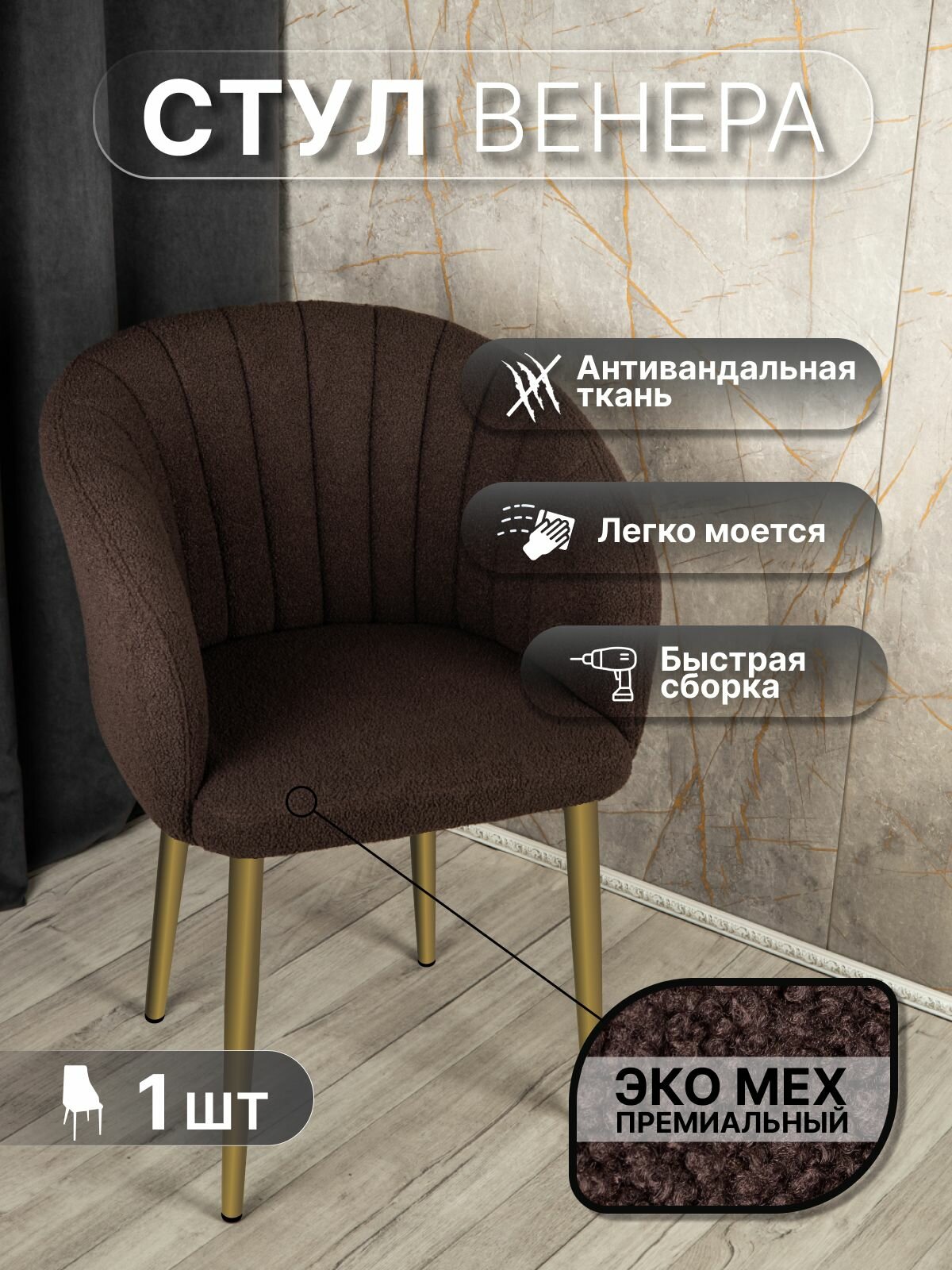 СохранитьСтул "Венера" У Стулыча, 1 шт, Букле, коричневый, золотистые ножки интересное: