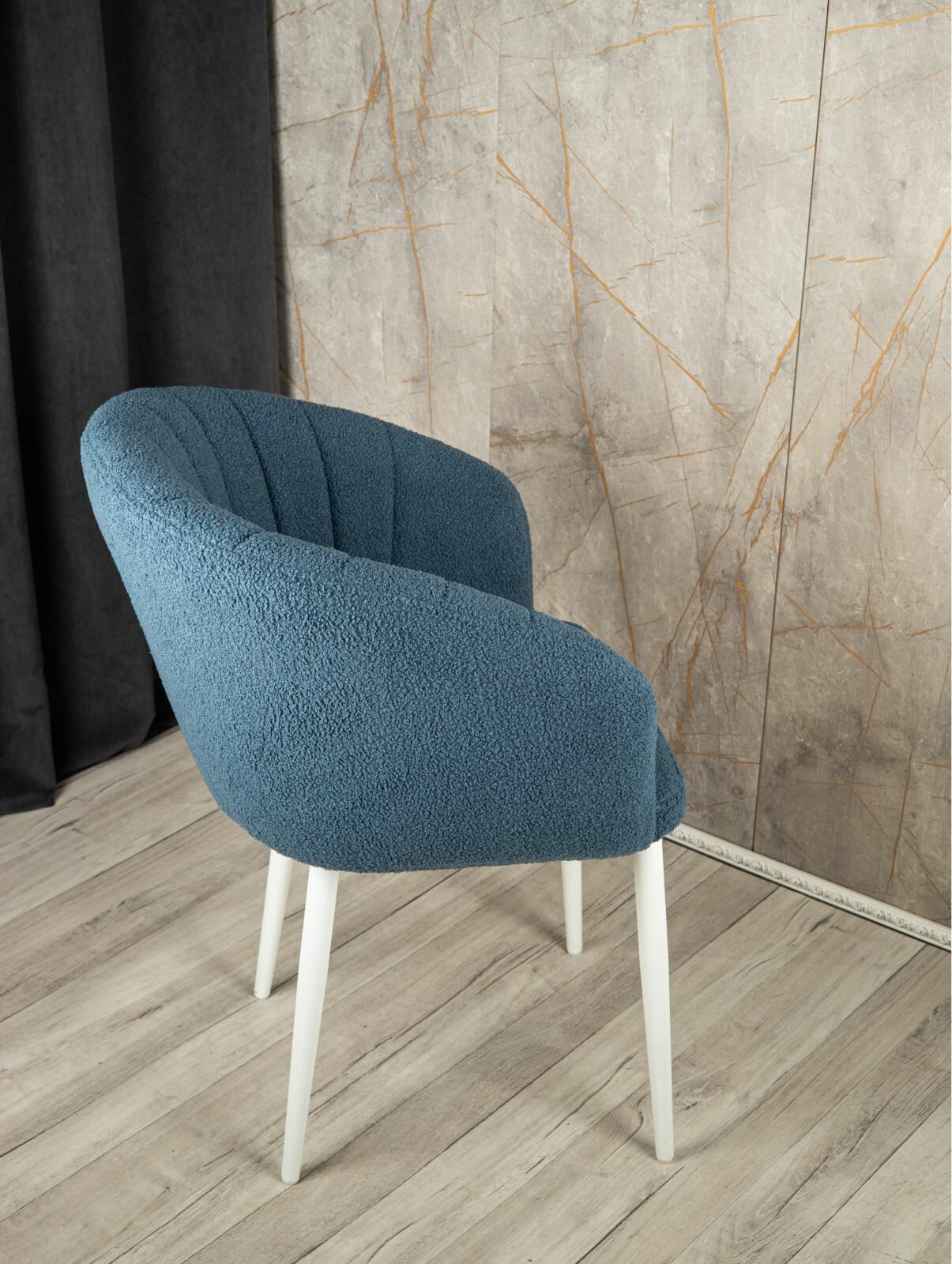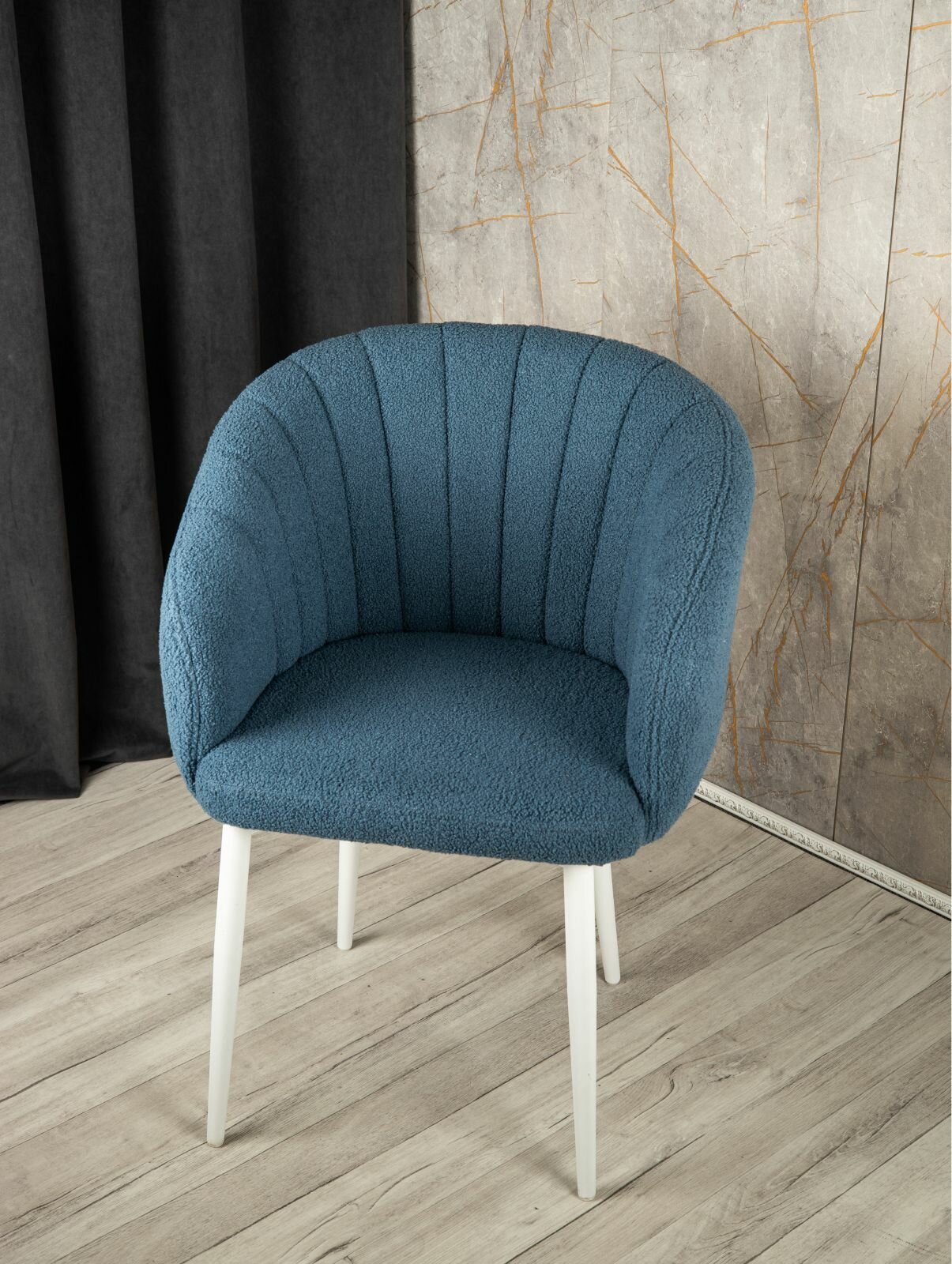 Купить Стул "Венера" У Стулыча, 1 шт, Букле, синий, белые ножки
