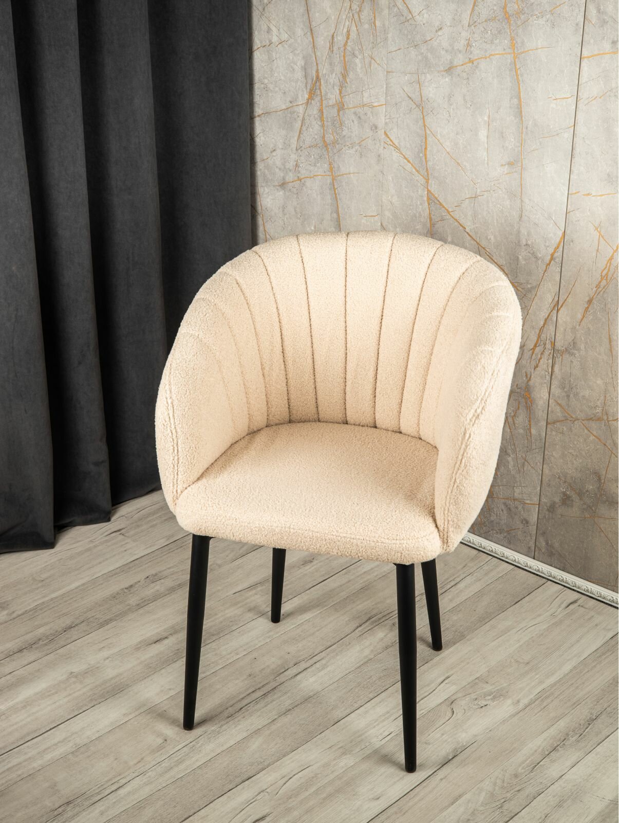 Купить Стул "Венера" У Стулыча, 1 шт, Букле, бежевый, черные ножки