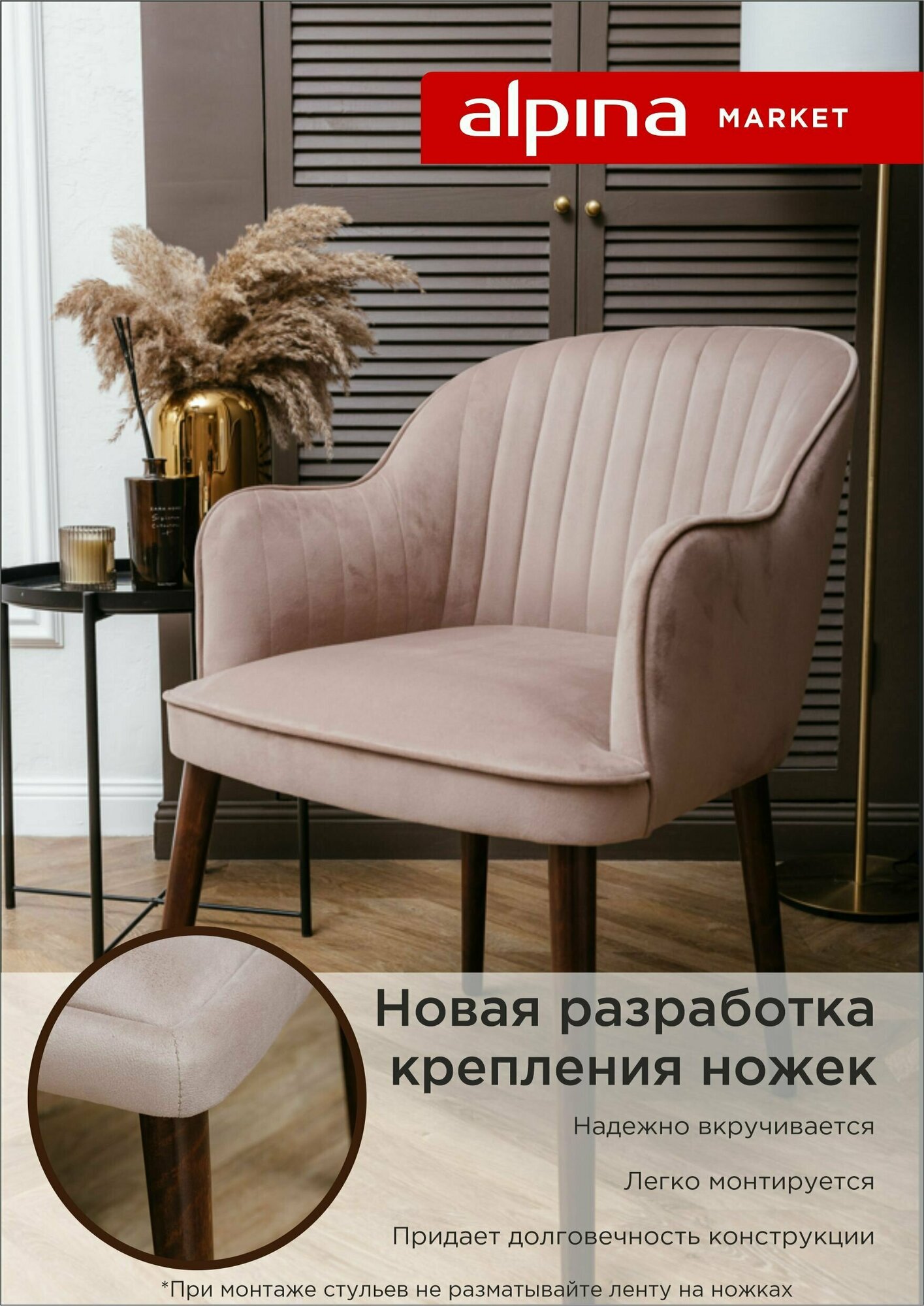 Стул мягкий SEDUM со спинкой для кухни на ножках стильный удобный в гостиную комнату модерн модный современный темный орех, микровелюр пыльная роза
