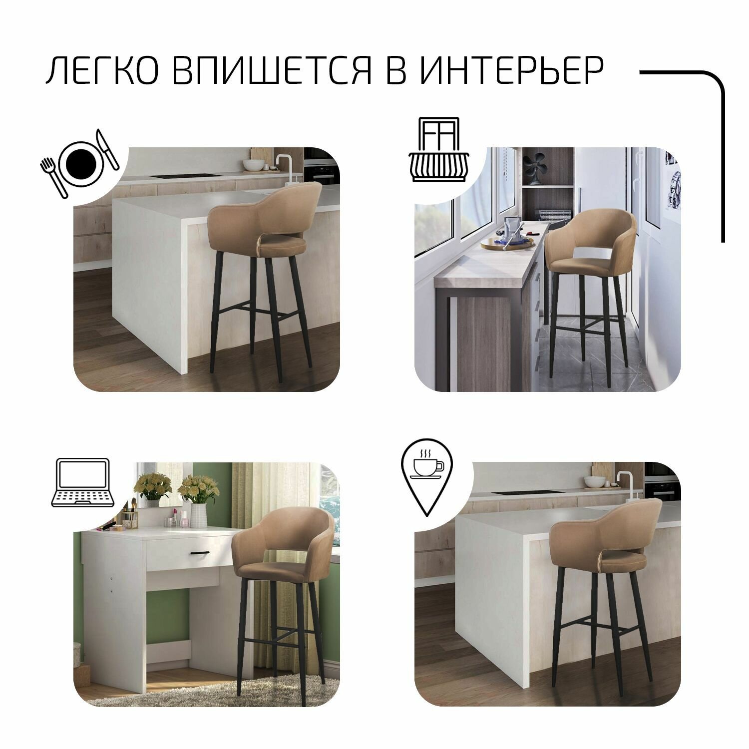 СохранитьБарный стул со спинкой, стул барный для кухни Oscar бежевый + черные ножки интересное: