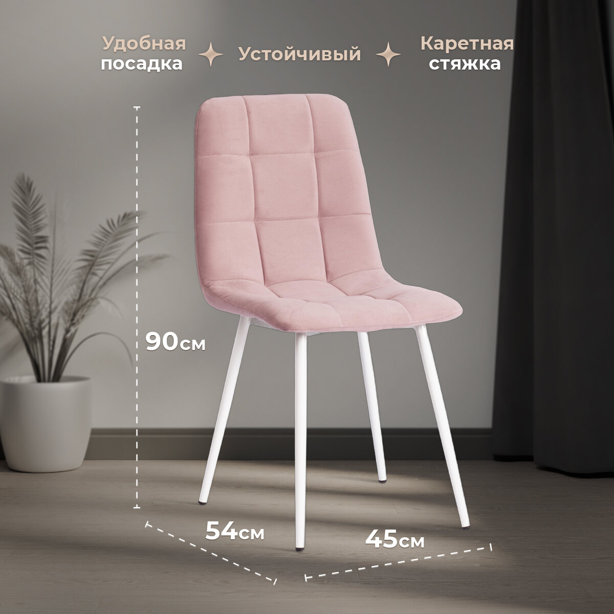 Комплект стульев Tetchair CHILLY MAX , Велюр/металл , 45 х 54 х 90 см , пыльно-розовый/белый (2шт/уп)