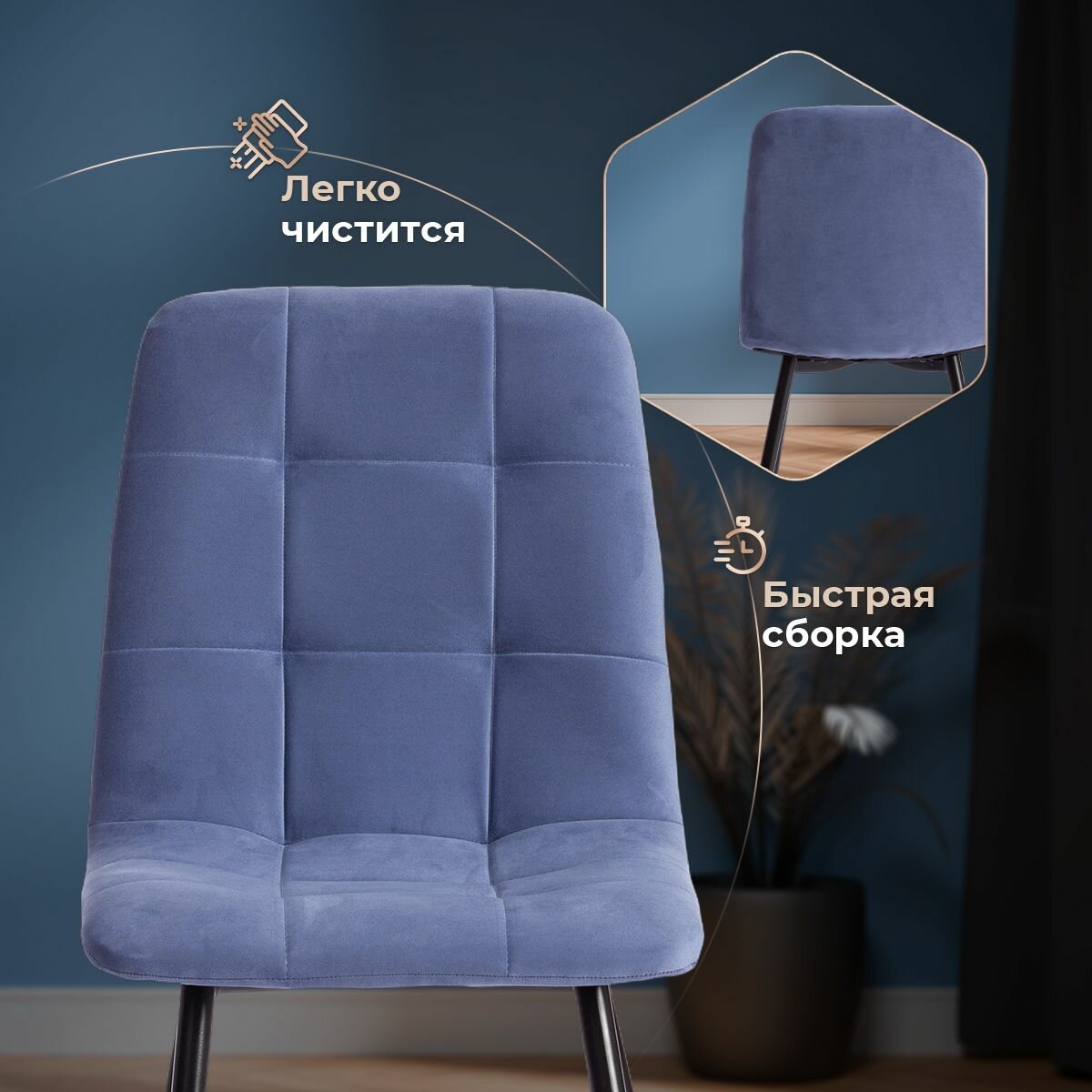 Комплект стульев Tetchair CHILLY MAX , Велюр/металл , 45 х 54 х 90 см , серо-голубой/черный (2шт/уп)