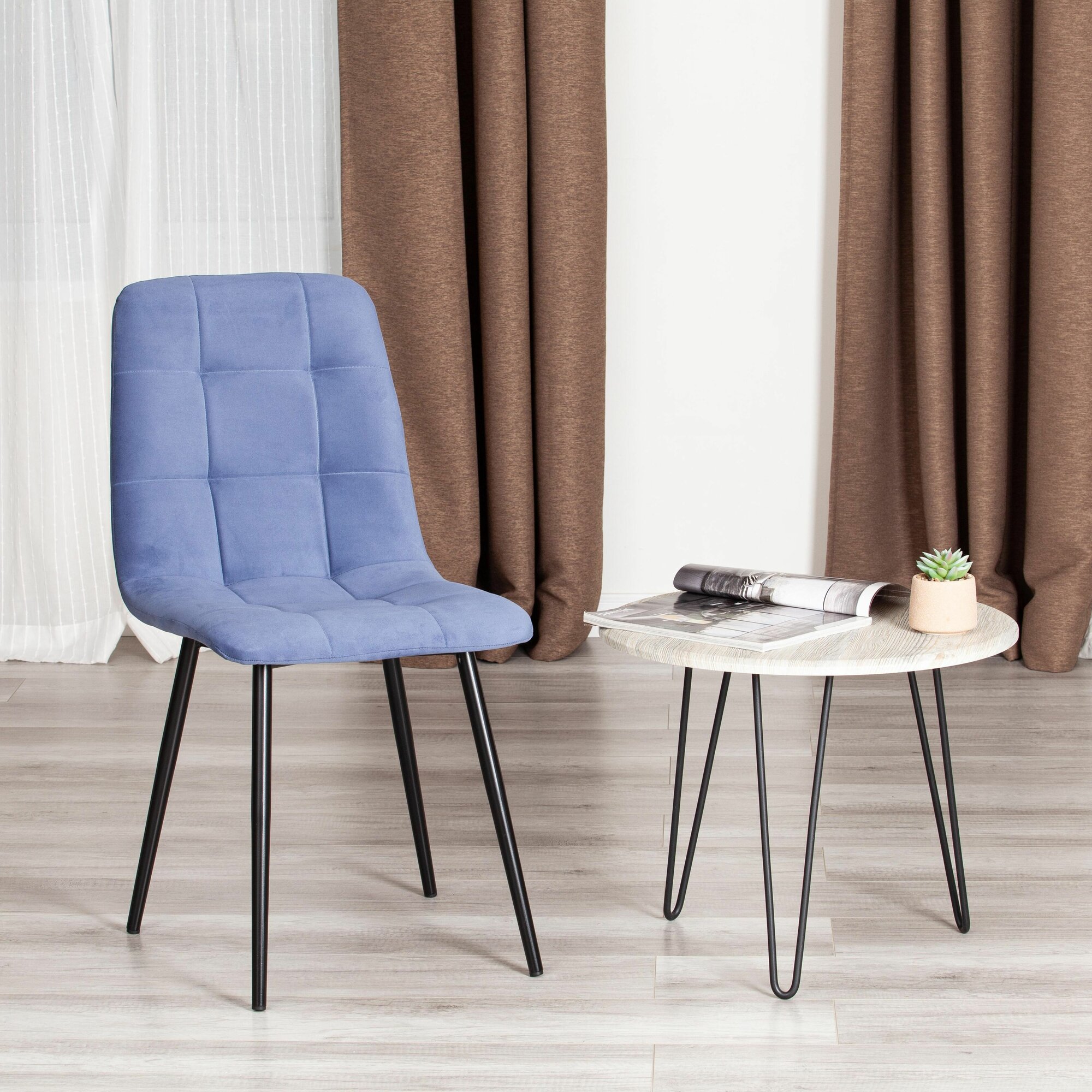 Стул Tetchair CHILLY MAX / 1 шт. в упаковке, Велюр/металл , 45 х 54 х 90 см , серо-голубой/черный