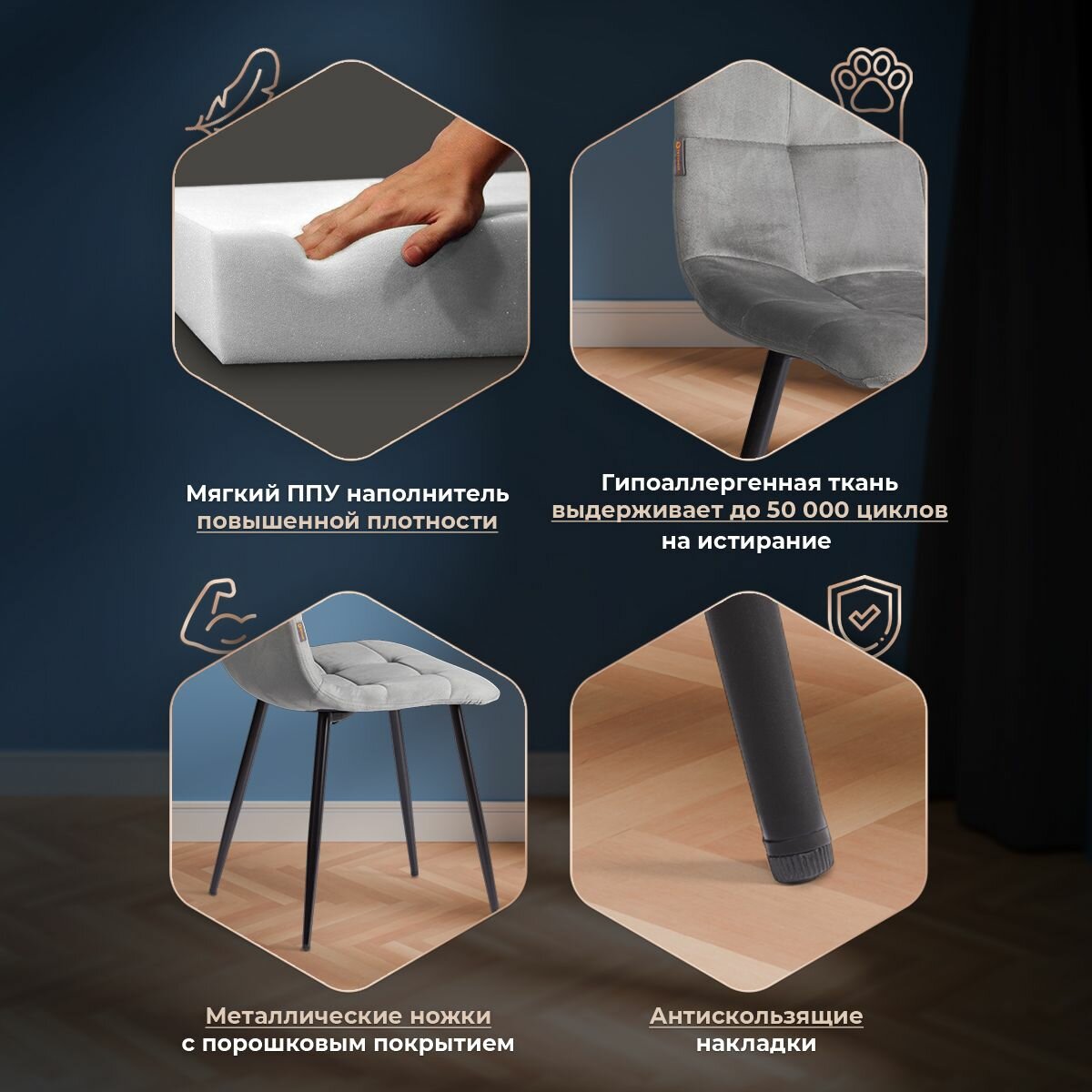 СохранитьКомплект стульев для кухни TetChair CHILLY (mod. JSC-220) 4 шт, велюр/металл, темно-серый/черный интересное: