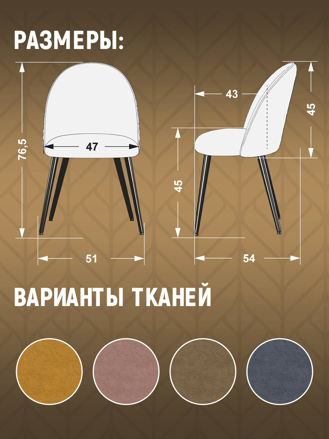 Стул кухонный StulStol DC-373, велюр, черный, ножки черные, 4 шт