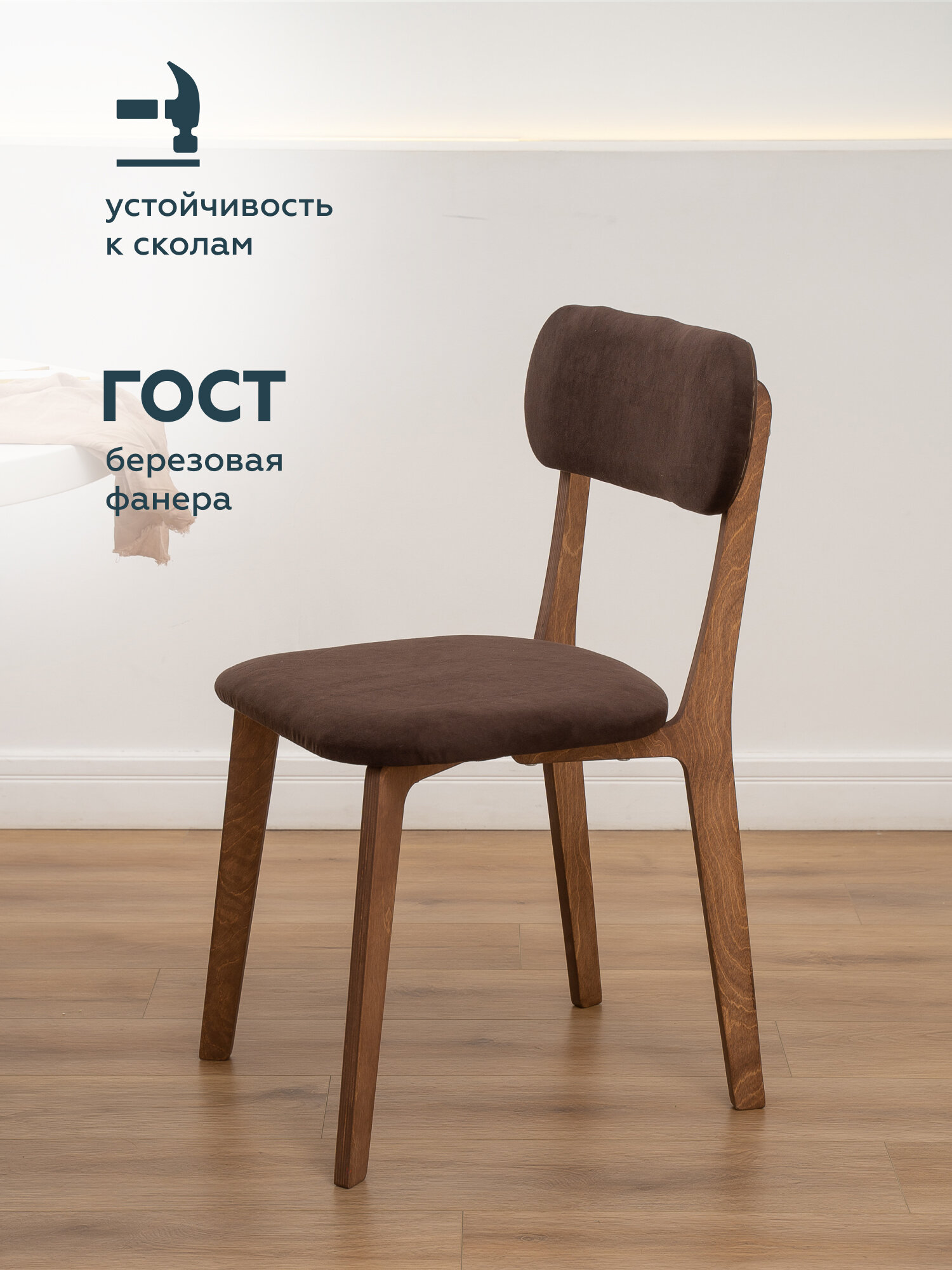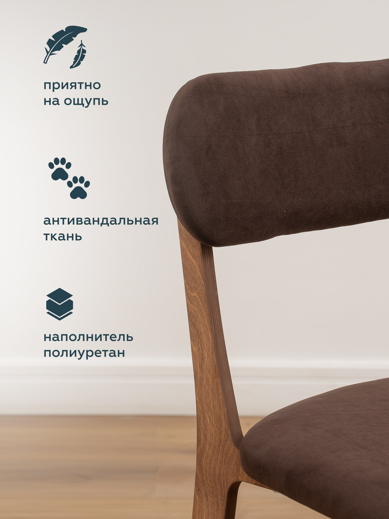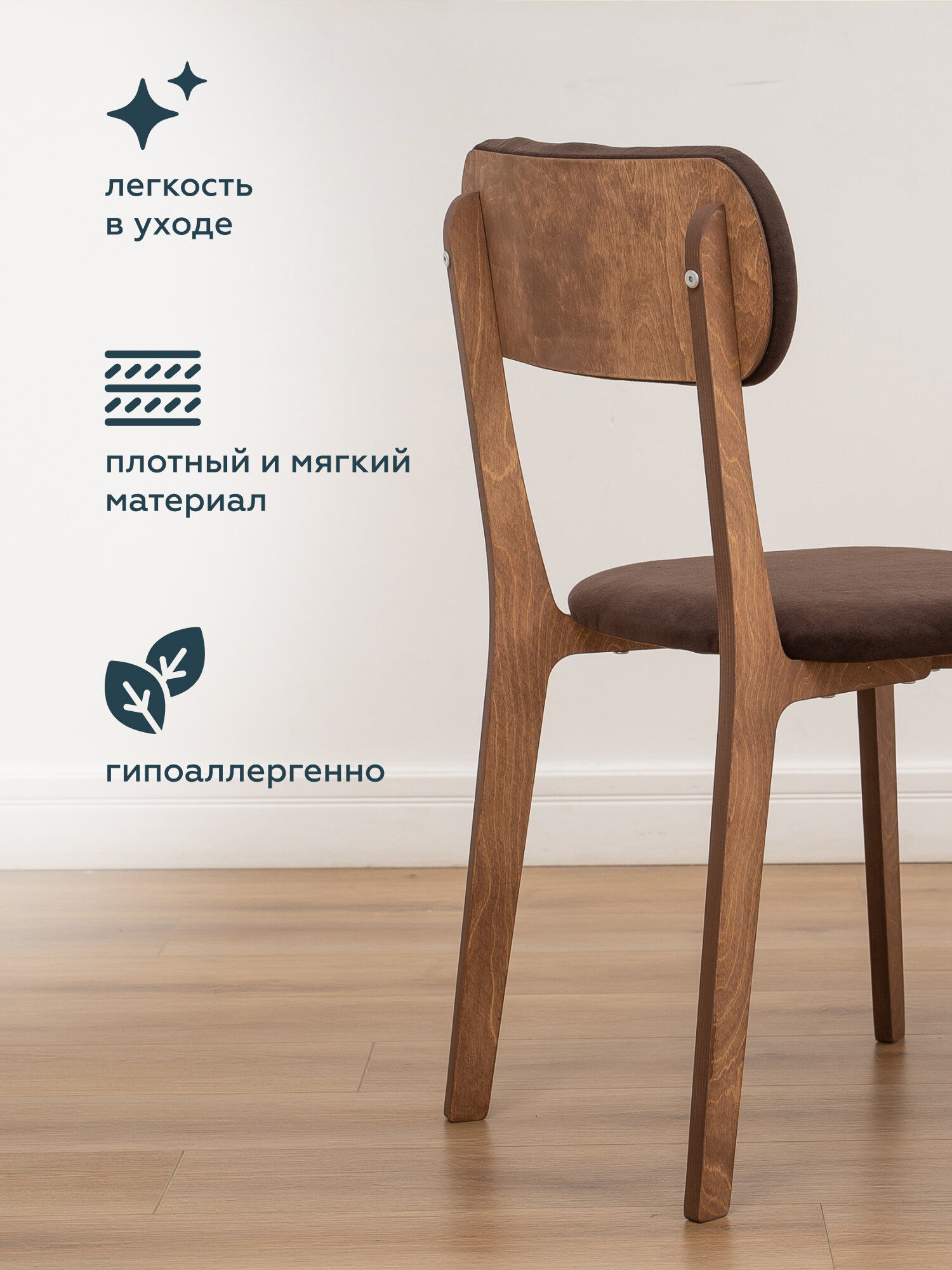 Стулья для кухни МЯГКАЯ ПОСАДКА комплект 4 шт деревянные мягкие со спинкой для обеденной зоны, велюр, коричневый 42х48х80 см
