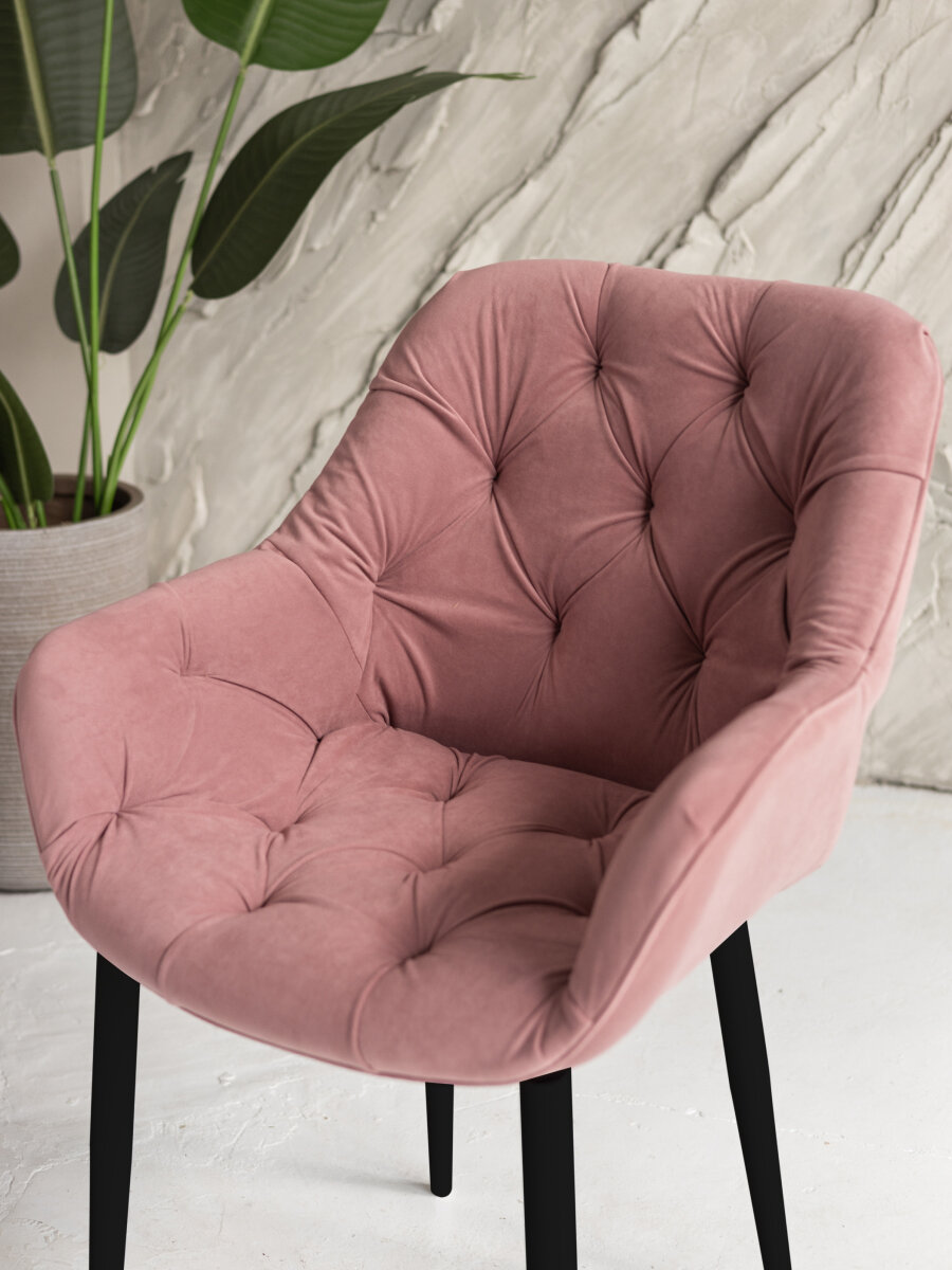 Стул для кухни мягкий розовый кресло со спинкой и подлокотниками интерьерный VVdom