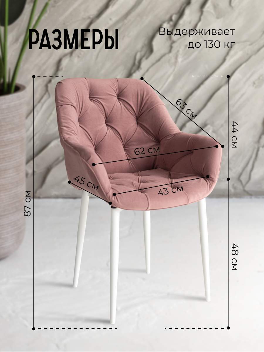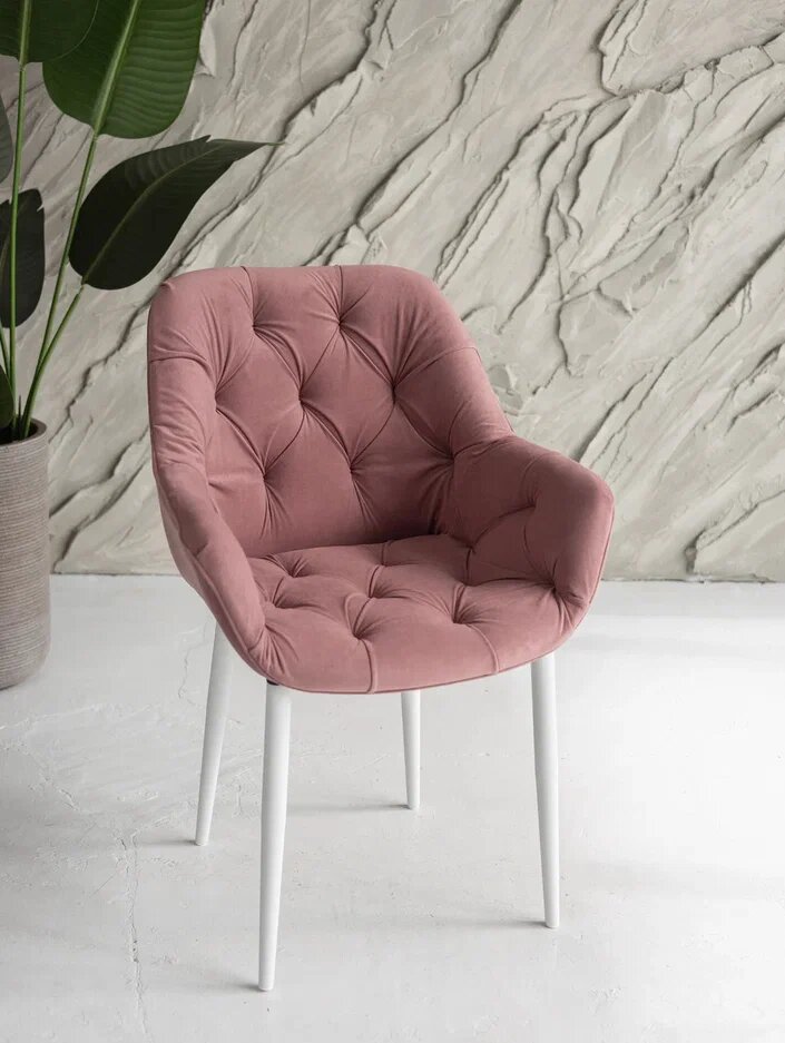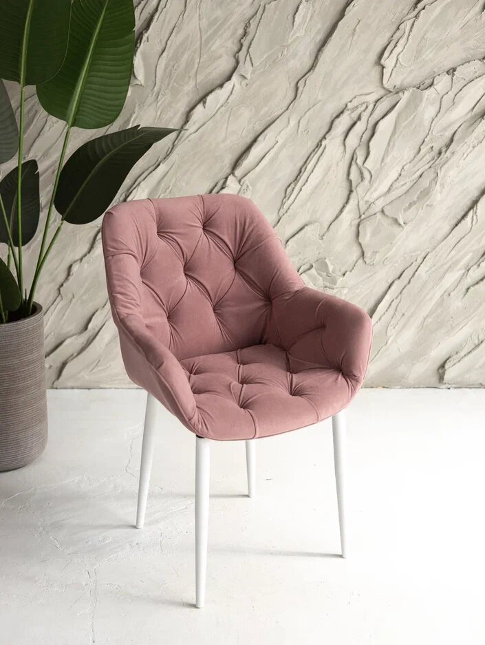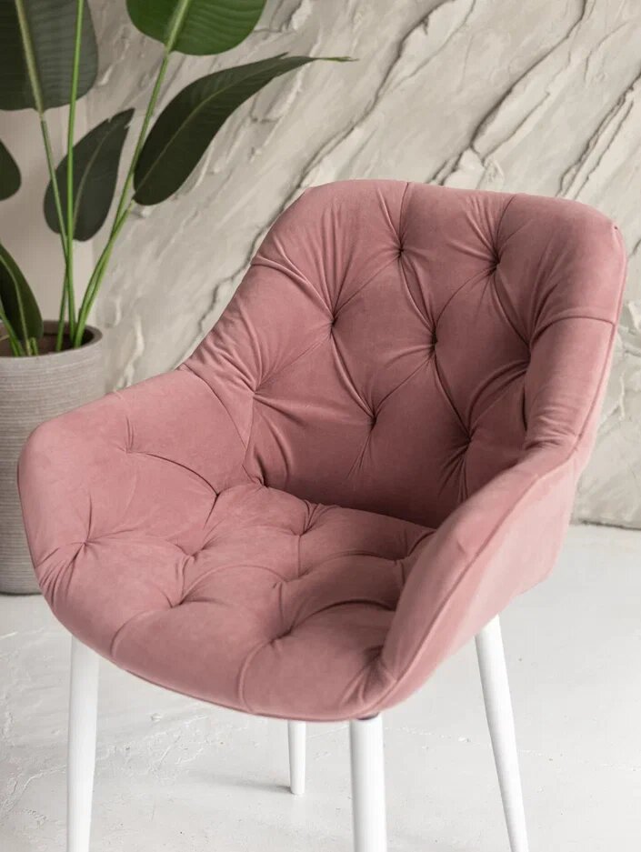 Стул для кухни мягкий розовый кресло со спинкой и подлокотниками интерьерный VVdom