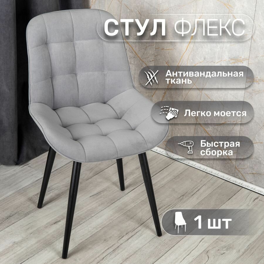 Купить Стул 1 шт "Флекс", У Стулыча, антивандальный велюр, металлокаркас, серый, черные ножки