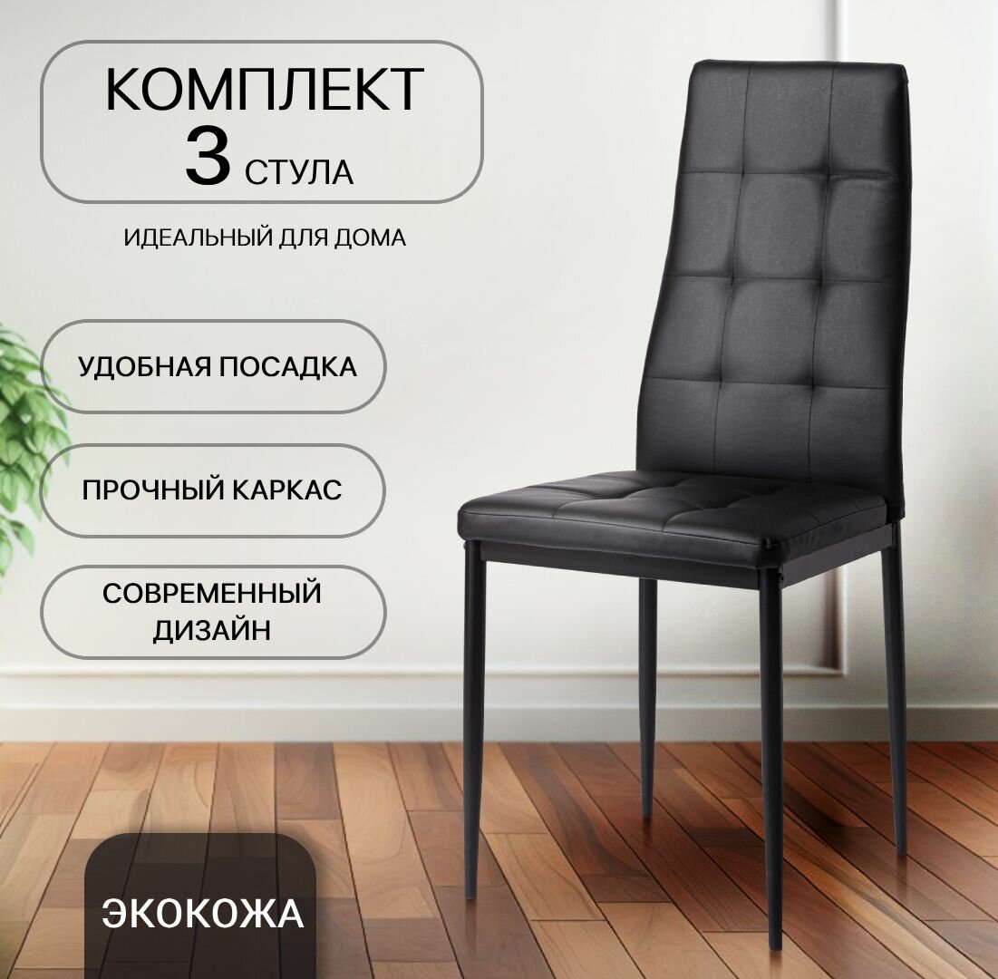Купить Стулья для кухни, 3 шт. La Room, Cafe 2, 4032А черный, экокожа, со спинкой