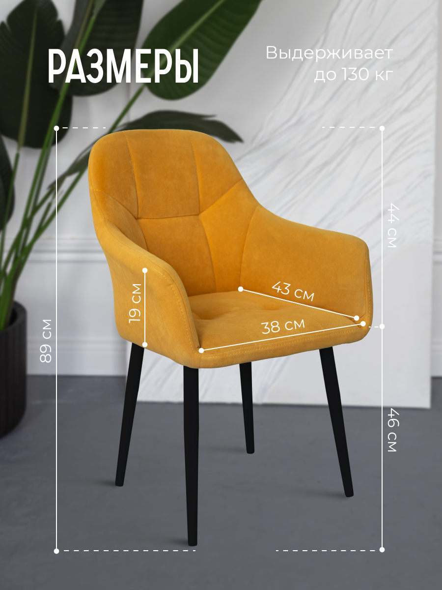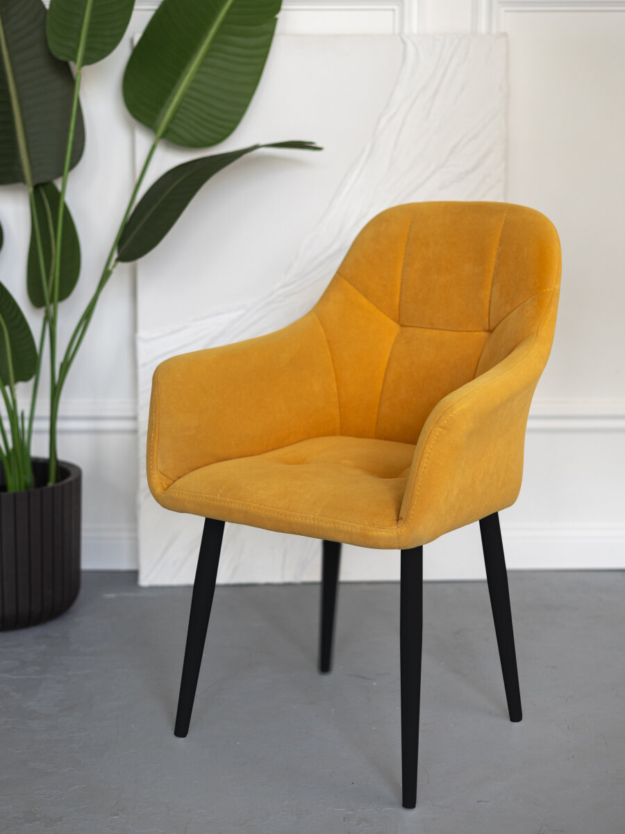 Стулья для кухни мягкие желтые 2 шт. со спинкой и подлокотниками комплект VVdom