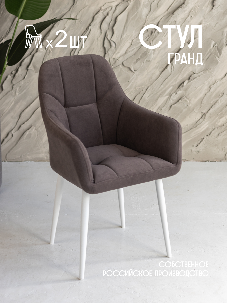 Стулья для кухни мягкие серые 2 шт. со спинкой и подлокотниками комплект VVdom