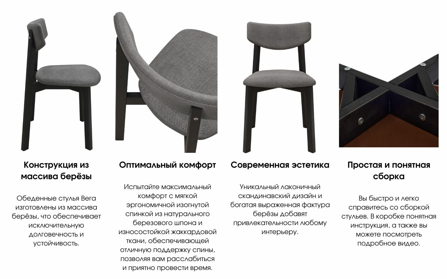 Стулья для кухни ВЕГА деревянный С МЯГКОЙ СПИНКОЙ, Черная эмаль Грей, комплект стульев 2 шт интересное:
