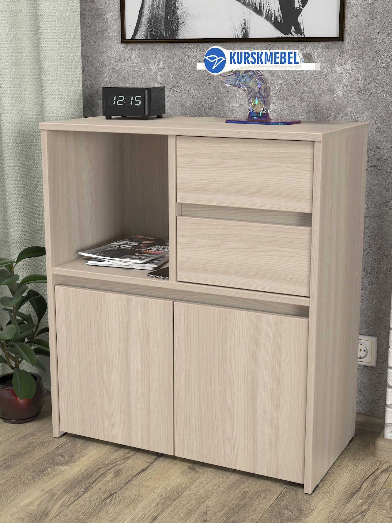 Комод Курскмебель №15, ЛДСП, цвет Антрацит, 2 ящика, 78 см х 67,8 см х 34,9 см