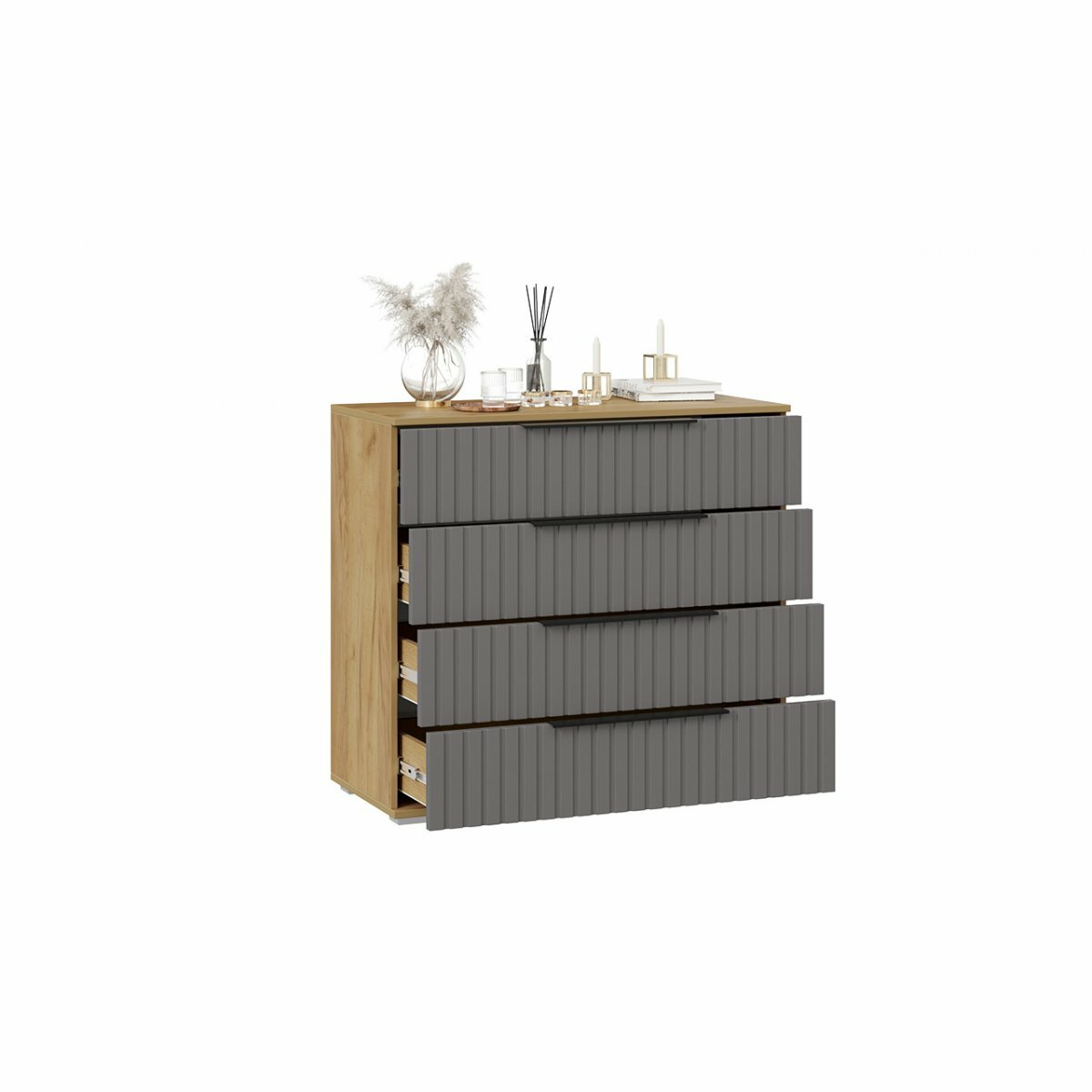 Комод комбинированный с ящиками Хилтон (Дуб Крафт золотой/Графит матовый