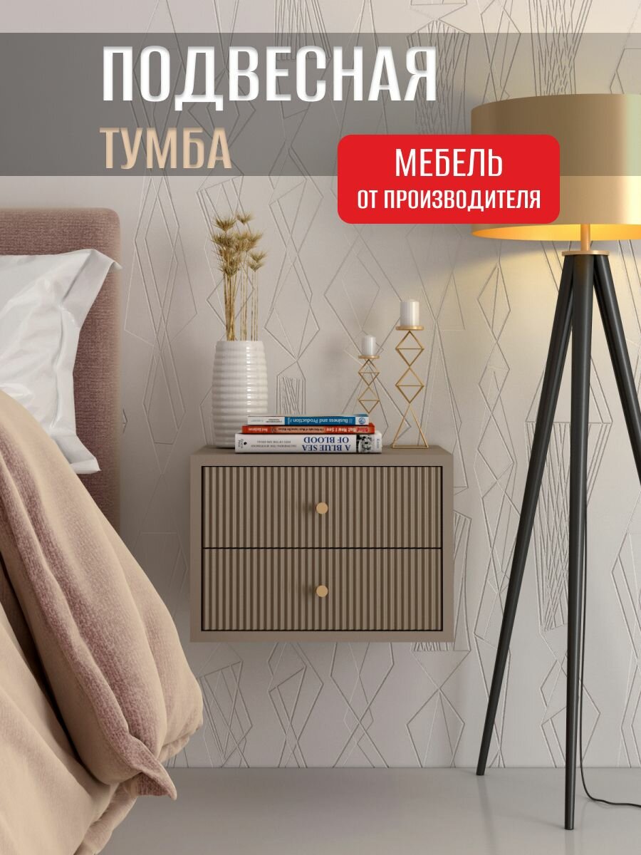 Тумба прикроватная подвесная Лайт, 2 ящика, 38х35х27см, Глиняно Серый/Холст Латте интересное: