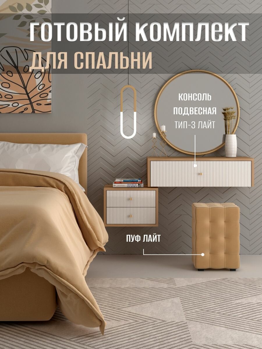 Тумба прикроватная подвесная Лайт тип 2, Дуб Крафт Золотой/Белый глянец G1-1 интересное: