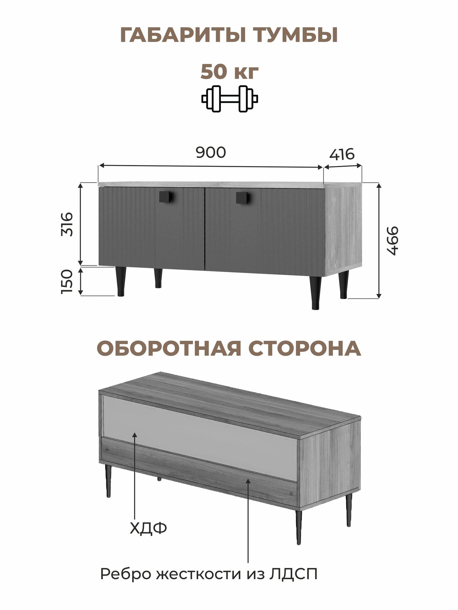 Тумба под телевизор "Нортон" на 90 см, с черными ножками