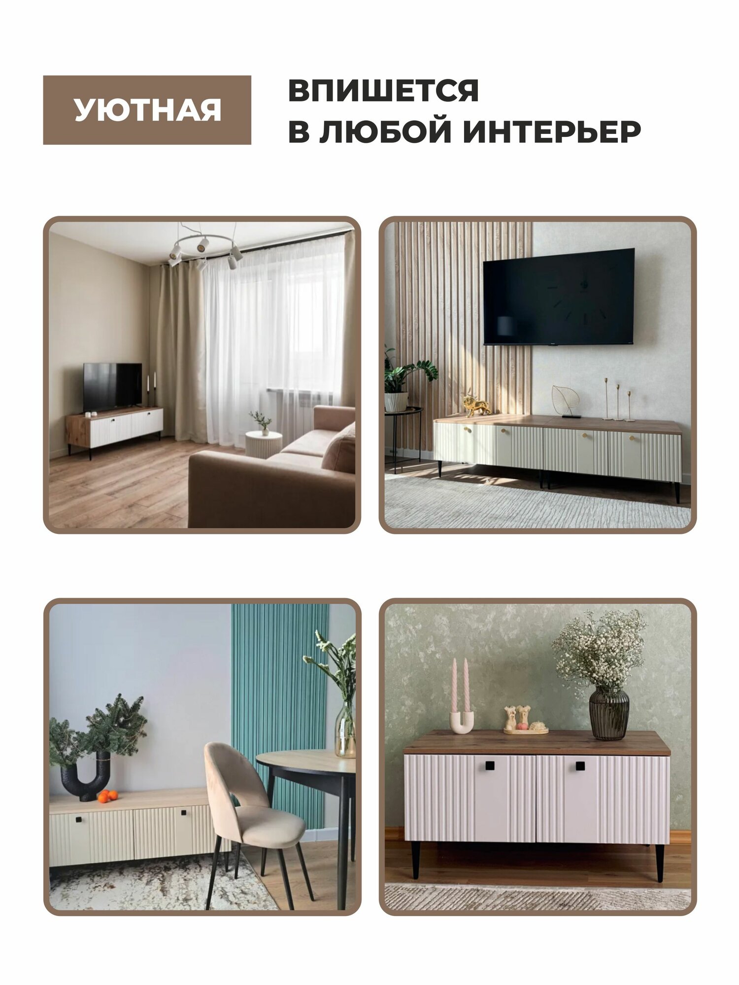 Тумба под телевизор "Нортон" на 120 см, напольная, бежевая