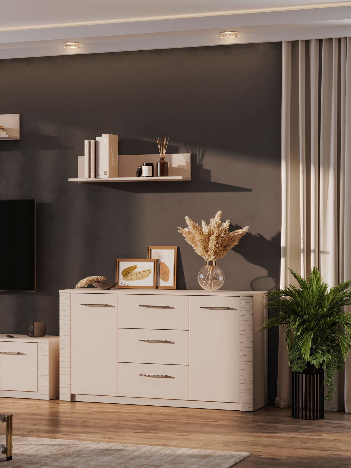 Купить Комод с выдвижными ящиками и полками Калипсо, 130х40х72см, Меланж