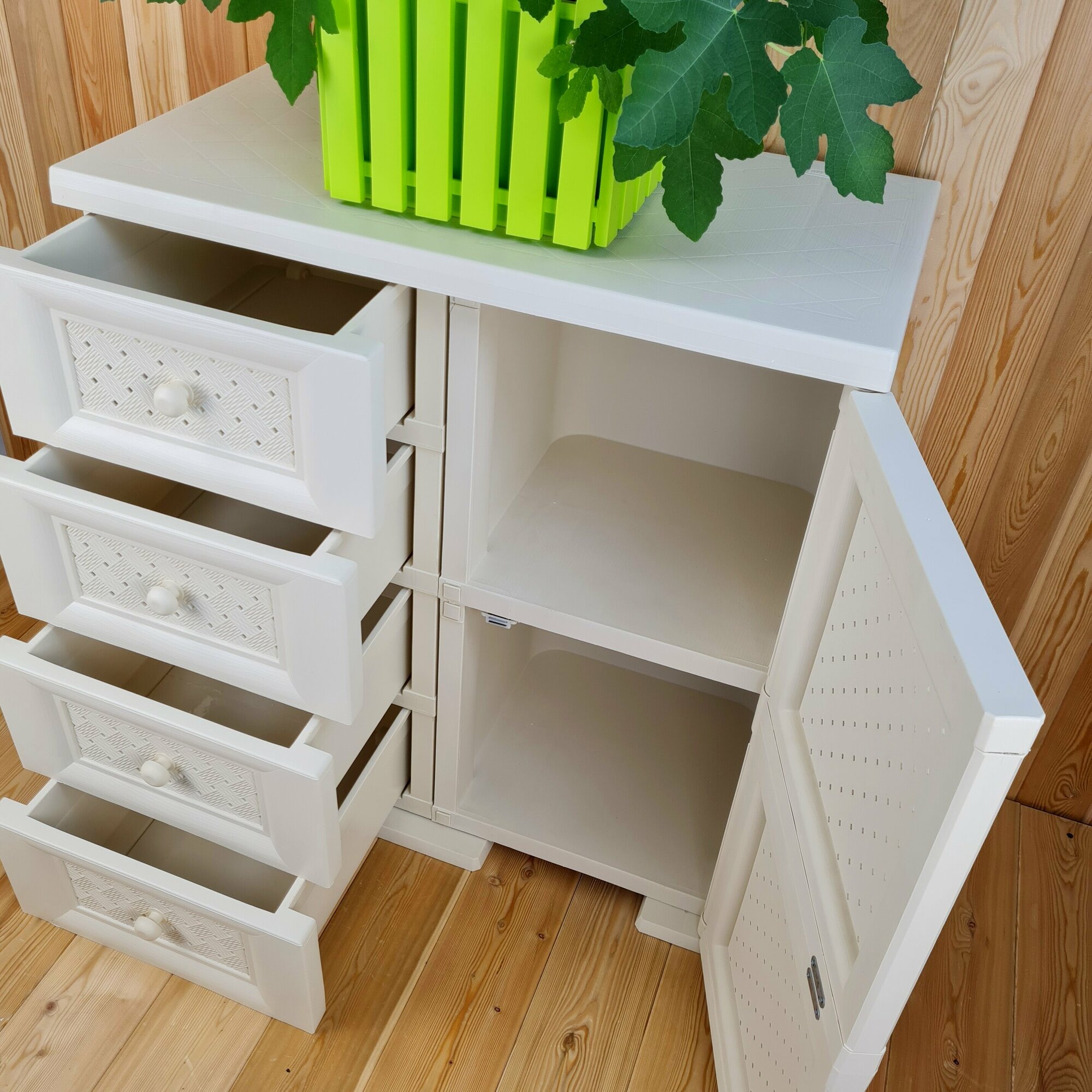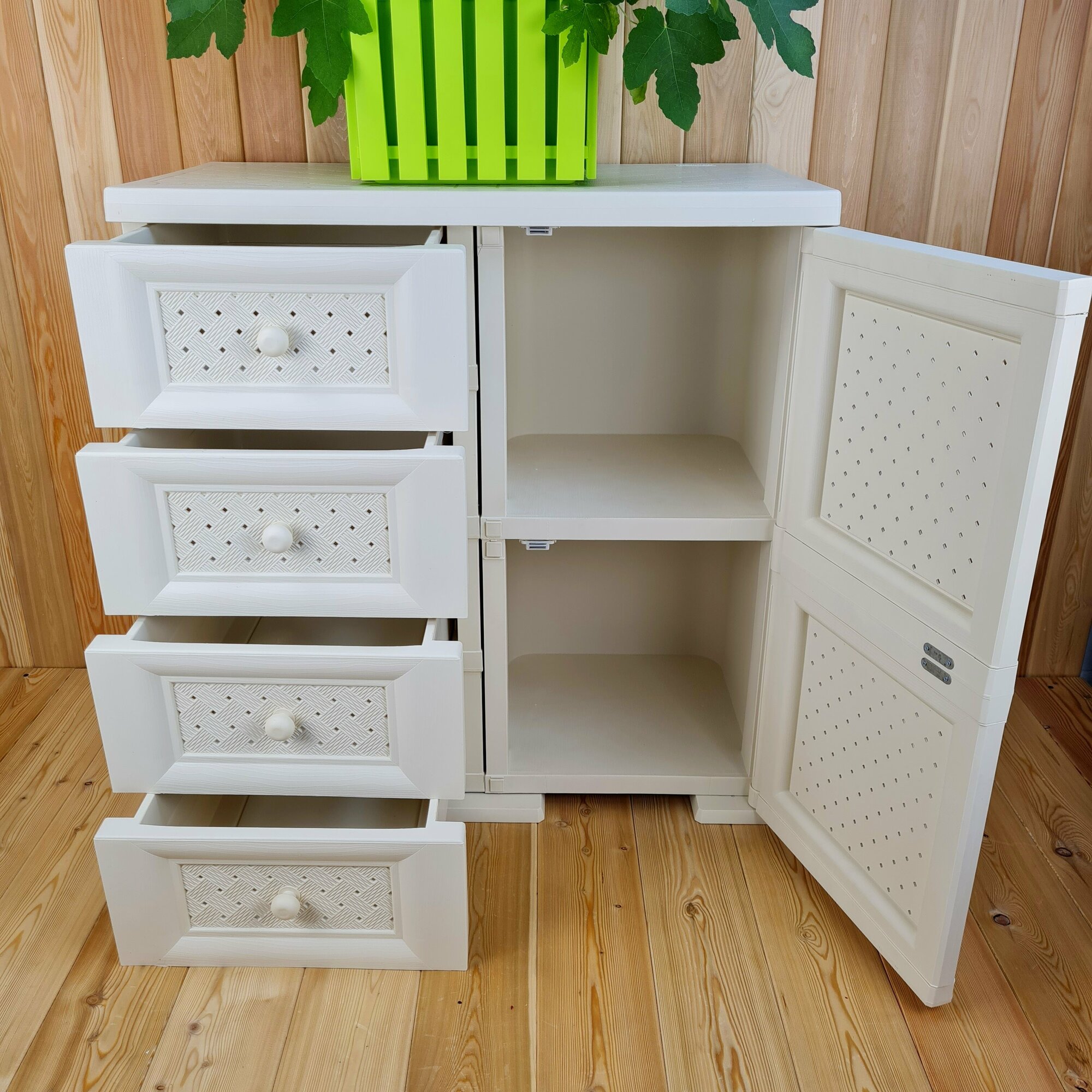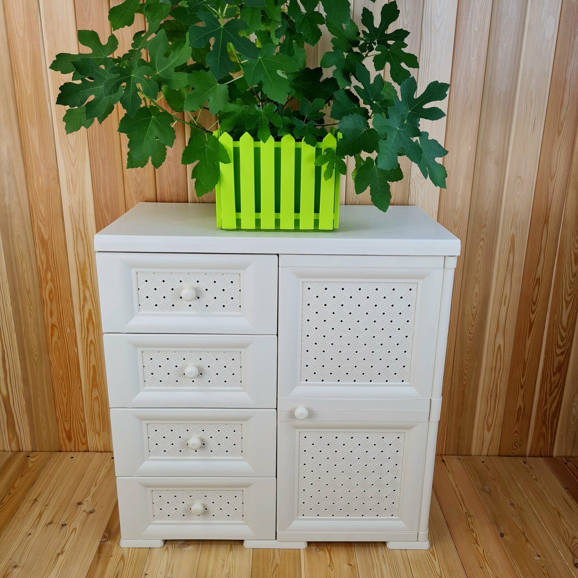 Комод-Тумба широкий, "УЮТ", 81х42х83,5 h, влагоустойчивый. 1 дверца, 4 шоколадных ящика. Цвет: Бежевый. Арт: Э-109-2-Б4Ш