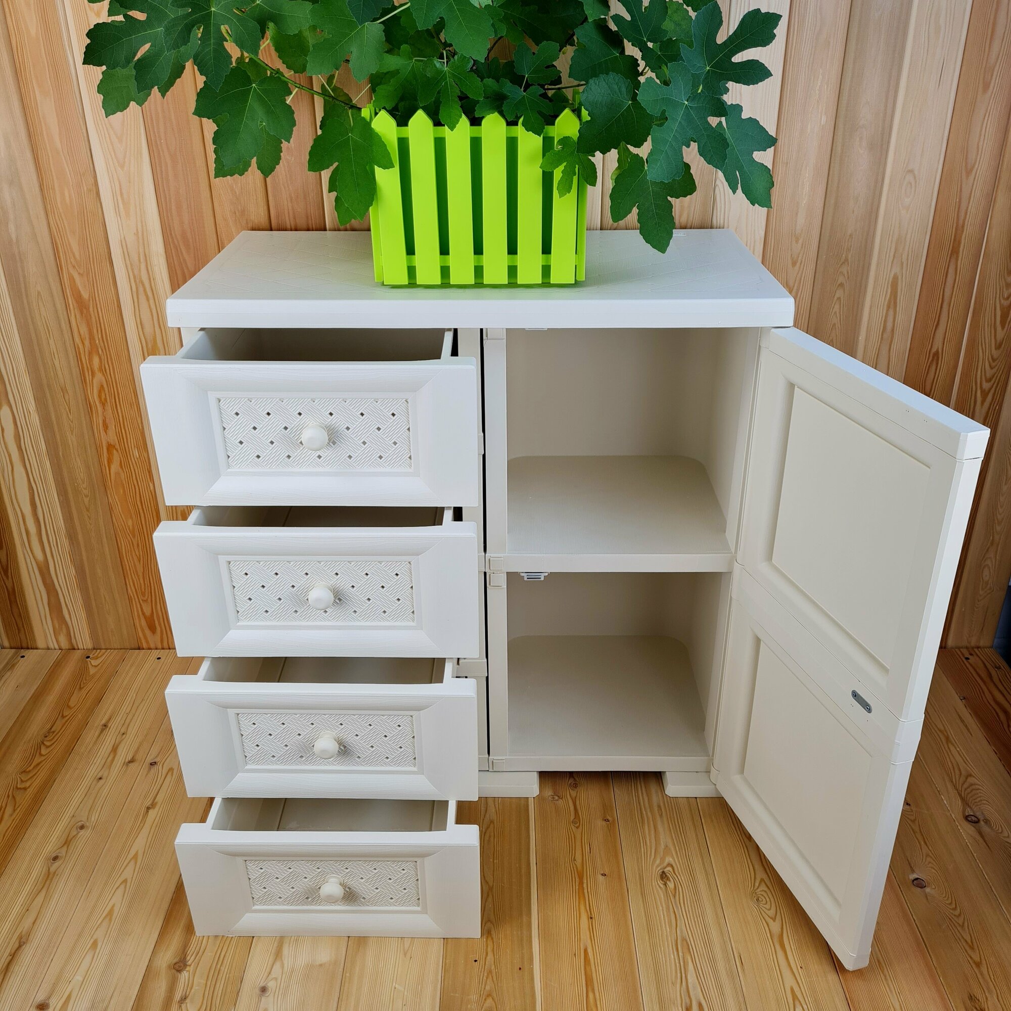 Комод-Тумба широкий, "УЮТ", 81х42х83,5 h, влагоустойчивый. 1 дверца, 4 шоколадных ящика. Цвет: Бежевый. Арт: Э-109-2-Б4Ш