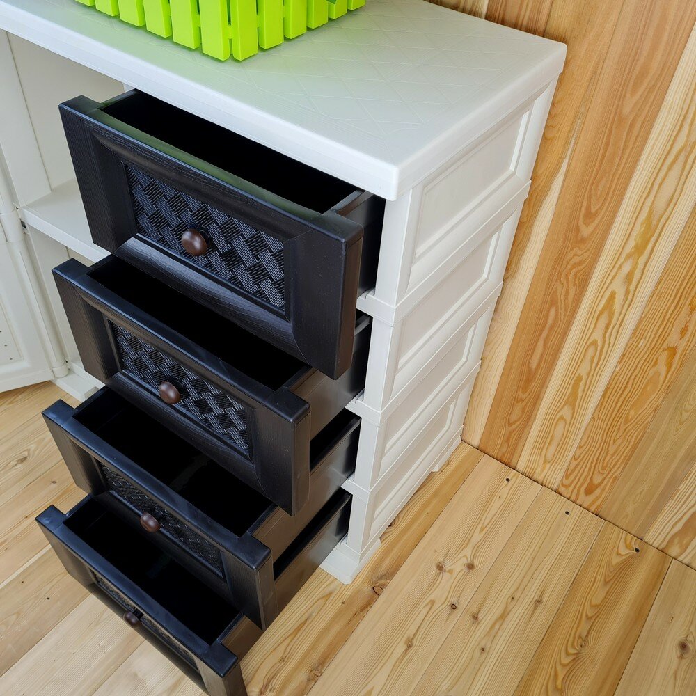 Комод-Тумба широкий, "УЮТ", 81х42х83,5 h, влагоустойчивый. 1 дверца, 4 шоколадных ящика. Цвет: Бежевый. Арт: Э-109-2-Б4Ш