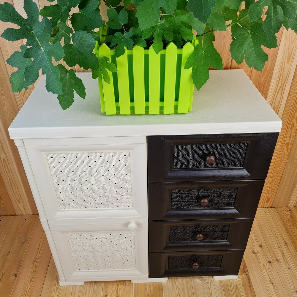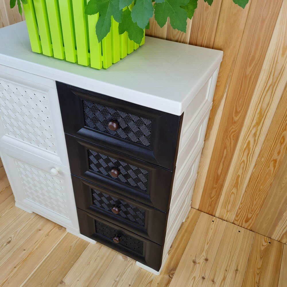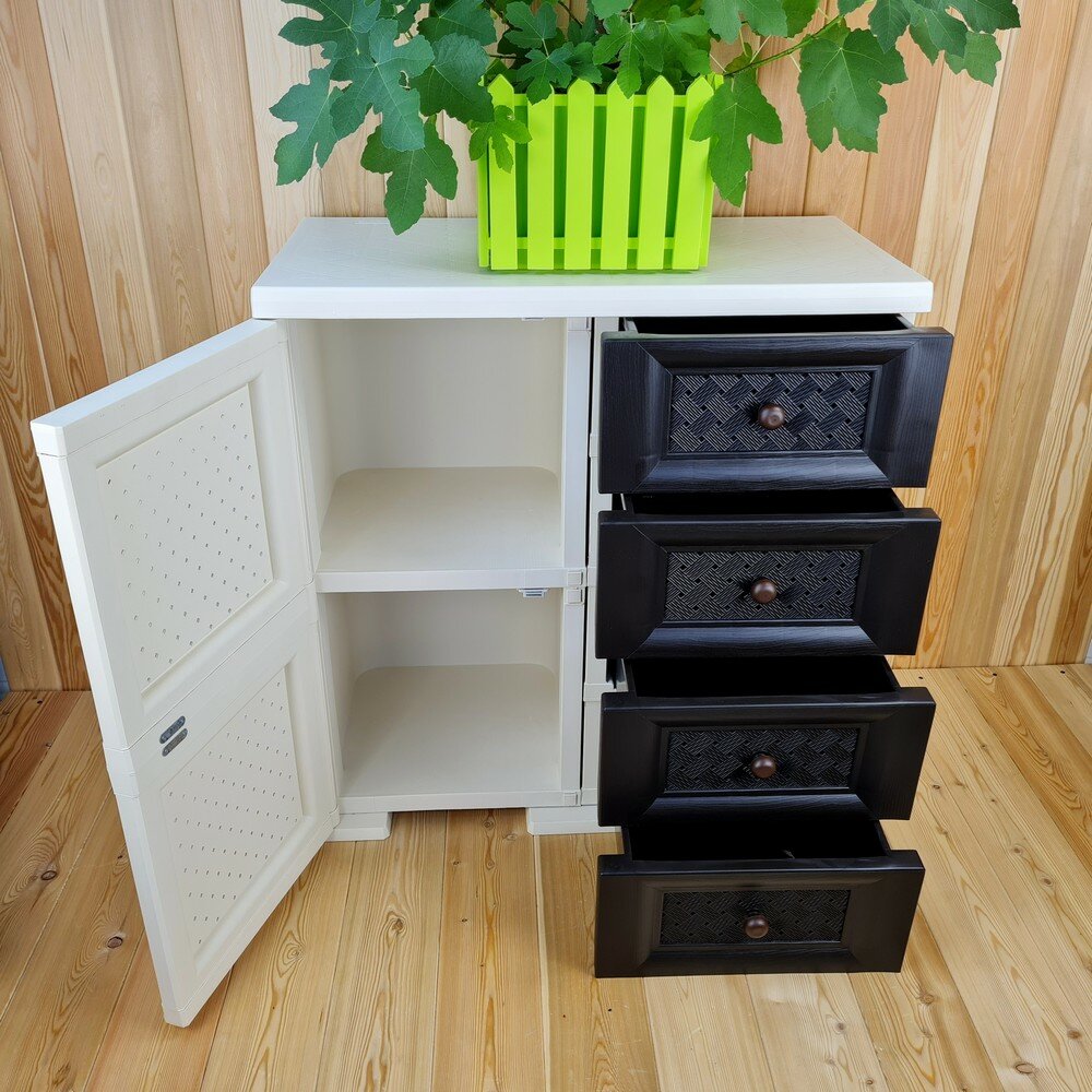 Купить Комод-Тумба широкий, "УЮТ", 81х42х83,5 h, влагоустойчивый. 1 дверца, 4 шоколадных ящика. Цвет: Бежевый. Арт: Э-109-Б4Ш