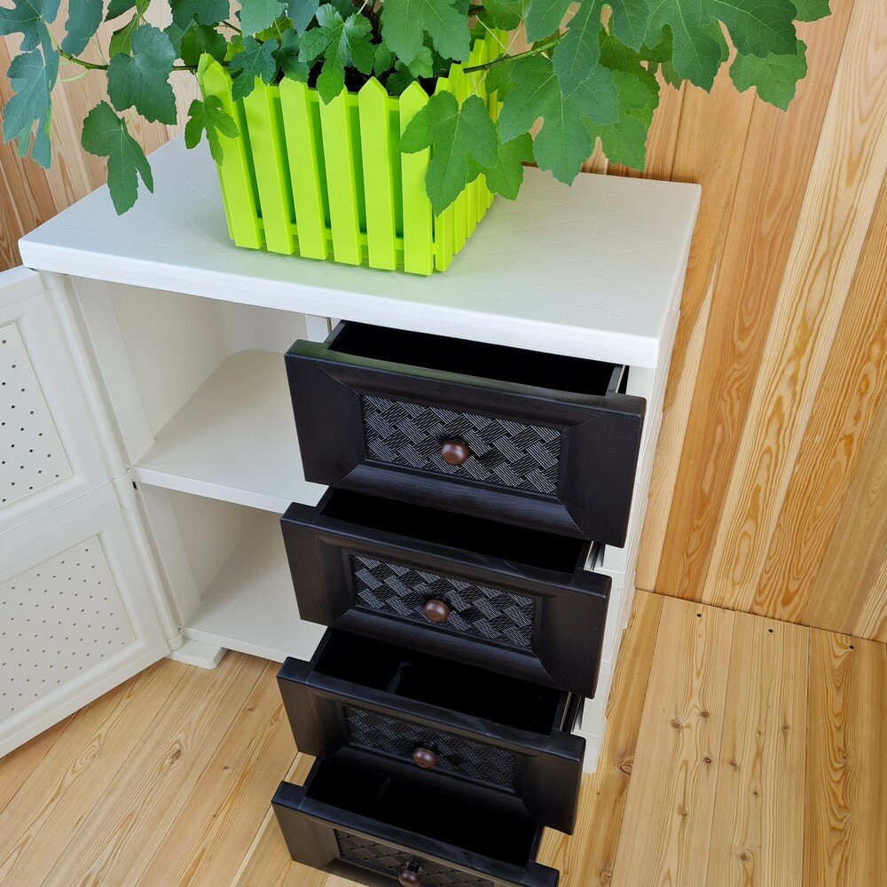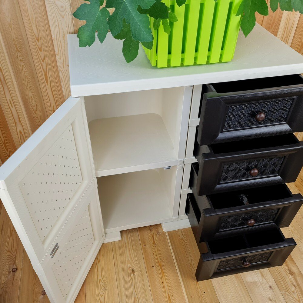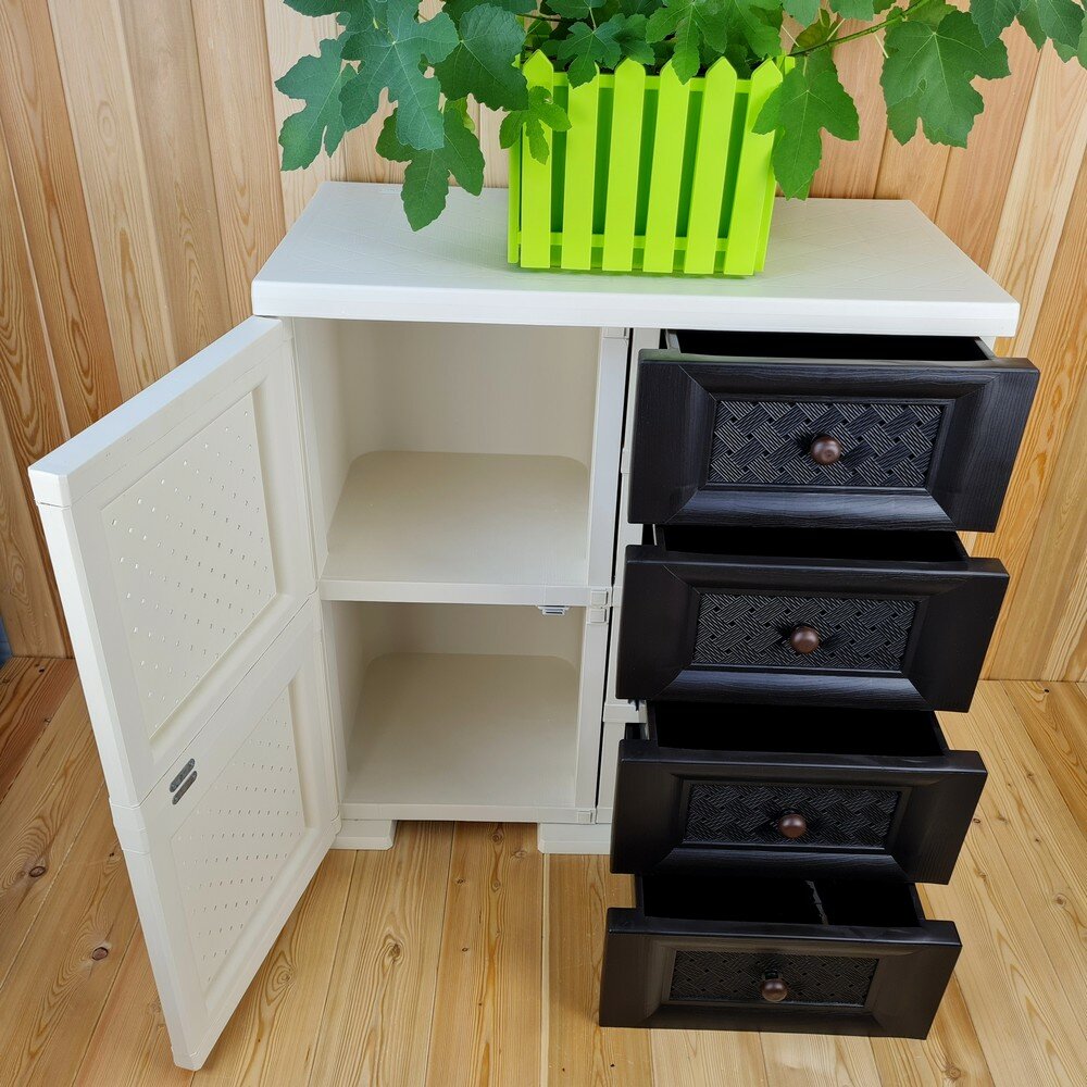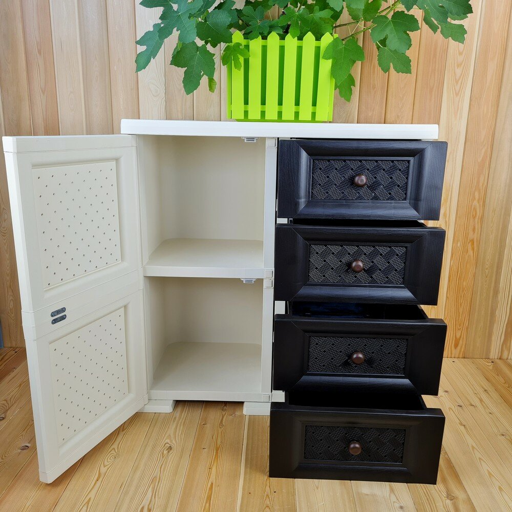 Купить Комод-Тумба широкий, "УЮТ", 81х42х83,5 h, влагоустойчивый. 1 дверца, 4 шоколадных ящика. Цвет: Бежевый. Арт: Э-109-Б4Ш