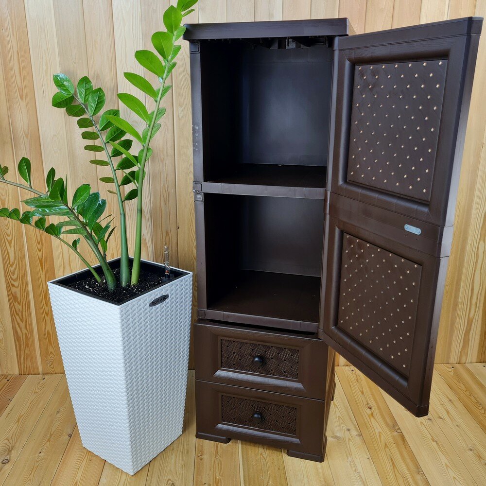 Тумба "УЮТ" пластиковая, усиленная, 40,5х42х122,5 h, 2 ящика, 2 дверцы. Цвет: Коричневый. Арт: Э-078-Д
