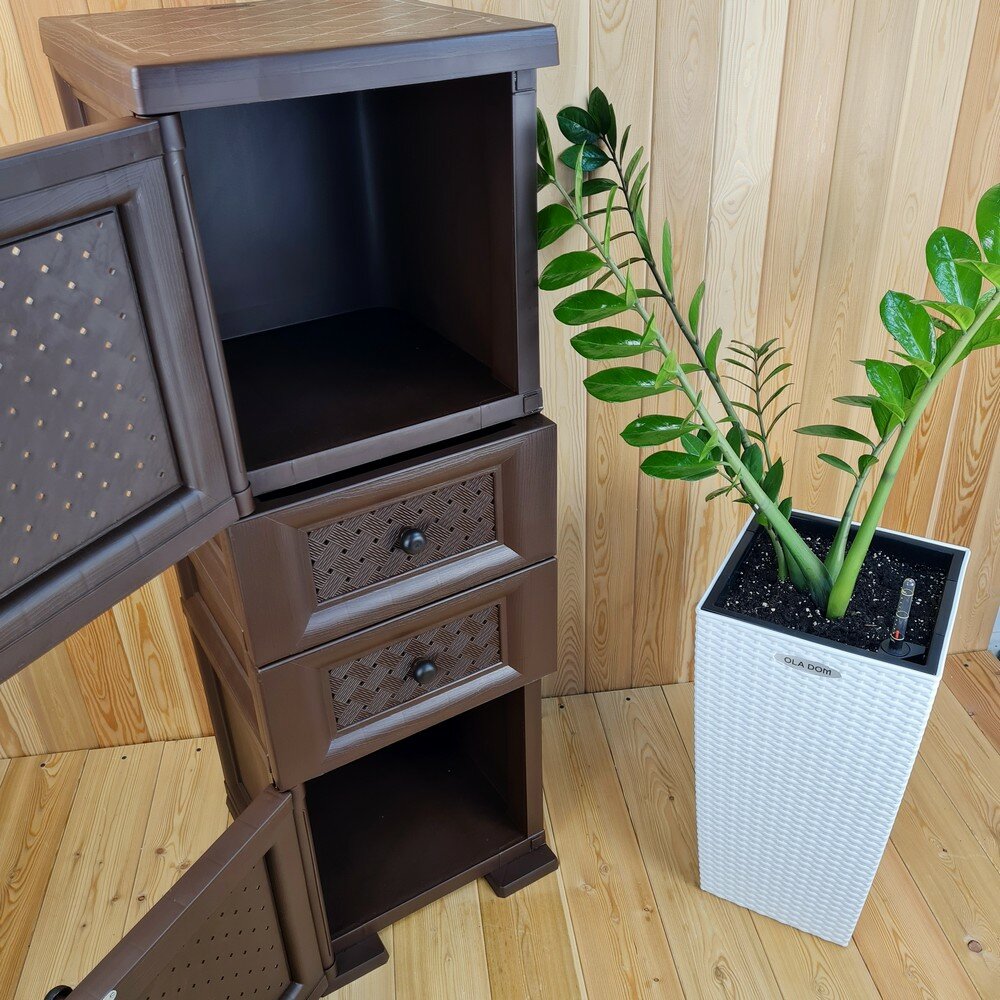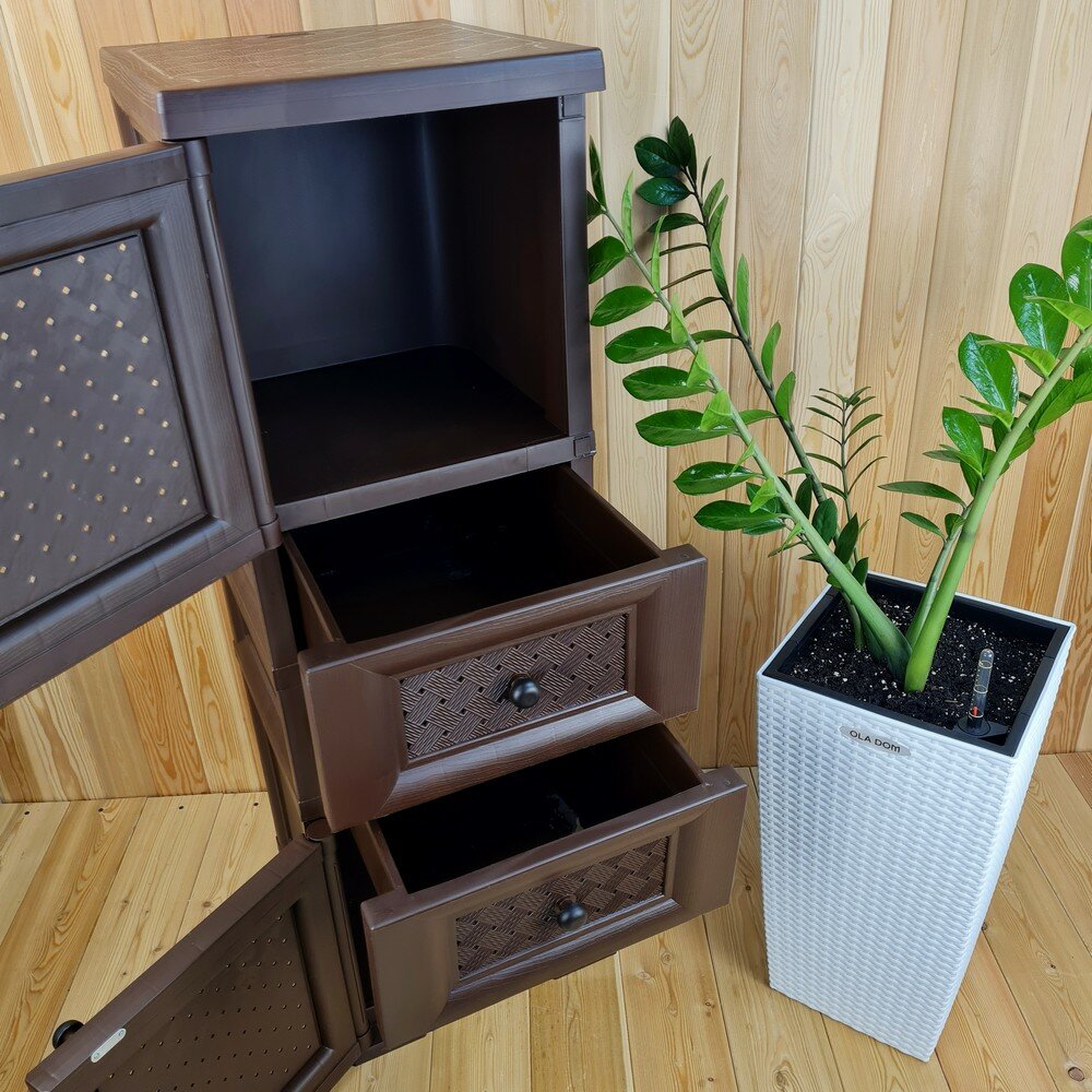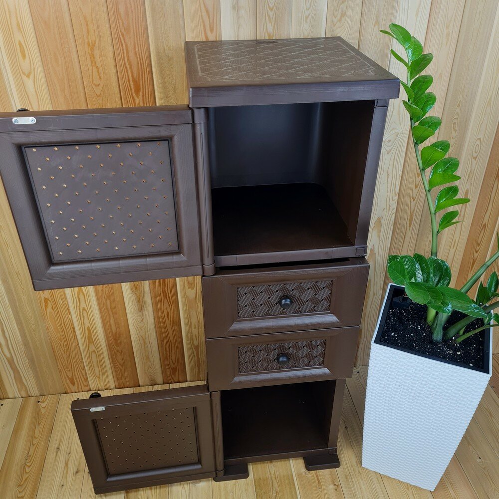 Тумба "УЮТ" пластиковая, усиленная, 40,5х42х122,5 h, 2 ящика, 2 дверцы. Цвет: Коричневый. Арт: Э-075-Д