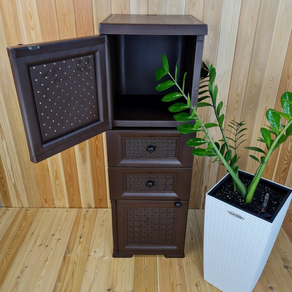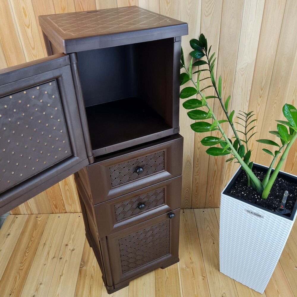 Тумба "УЮТ" пластиковая, усиленная, 40,5х42х122,5 h, 2 ящика, 1 дверца высокая. Цвет: Коричневый. Арт: Э-081-Д