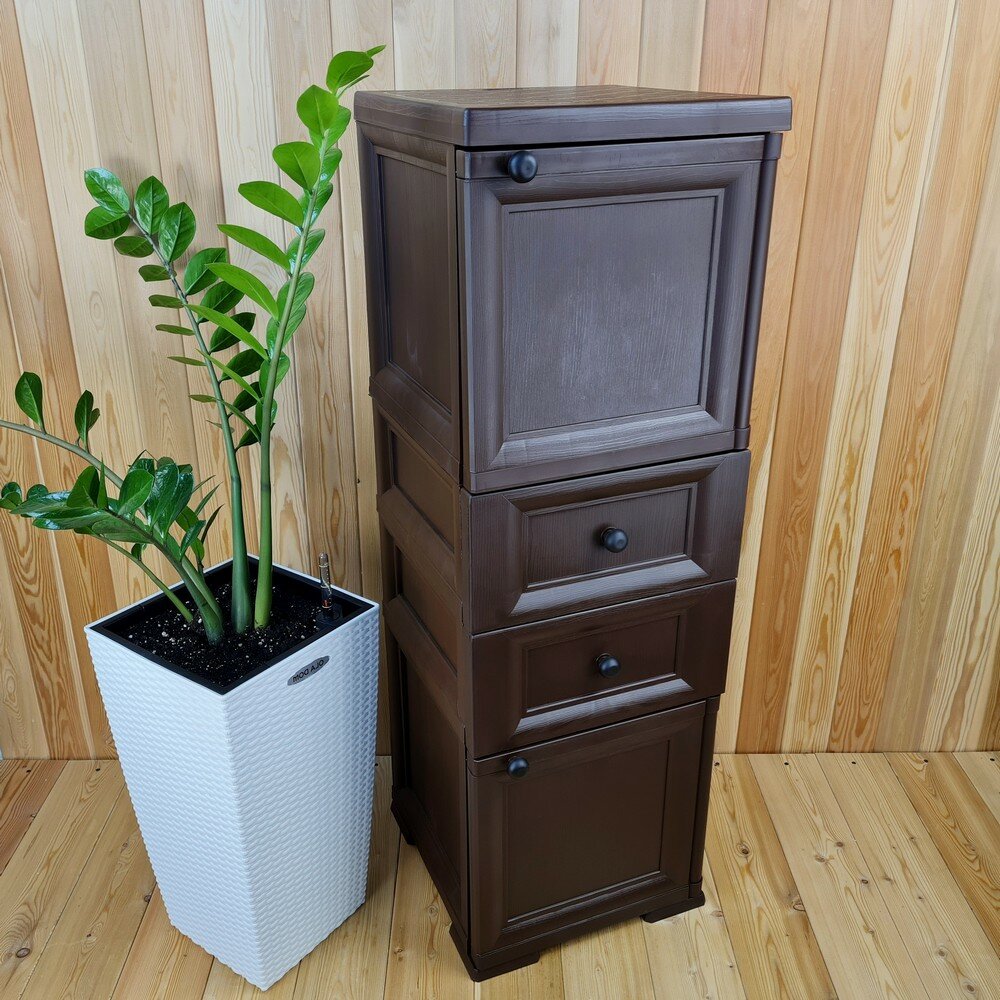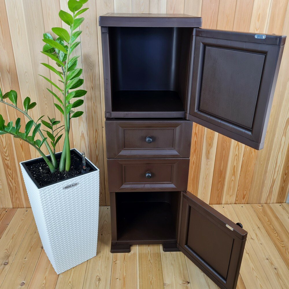 Тумба "УЮТ" пластиковая, усиленная, 40,5х42х122,5 h, 2 ящика, 2 дверцы. Цвет: Коричневый. Арт: Э-078-Д