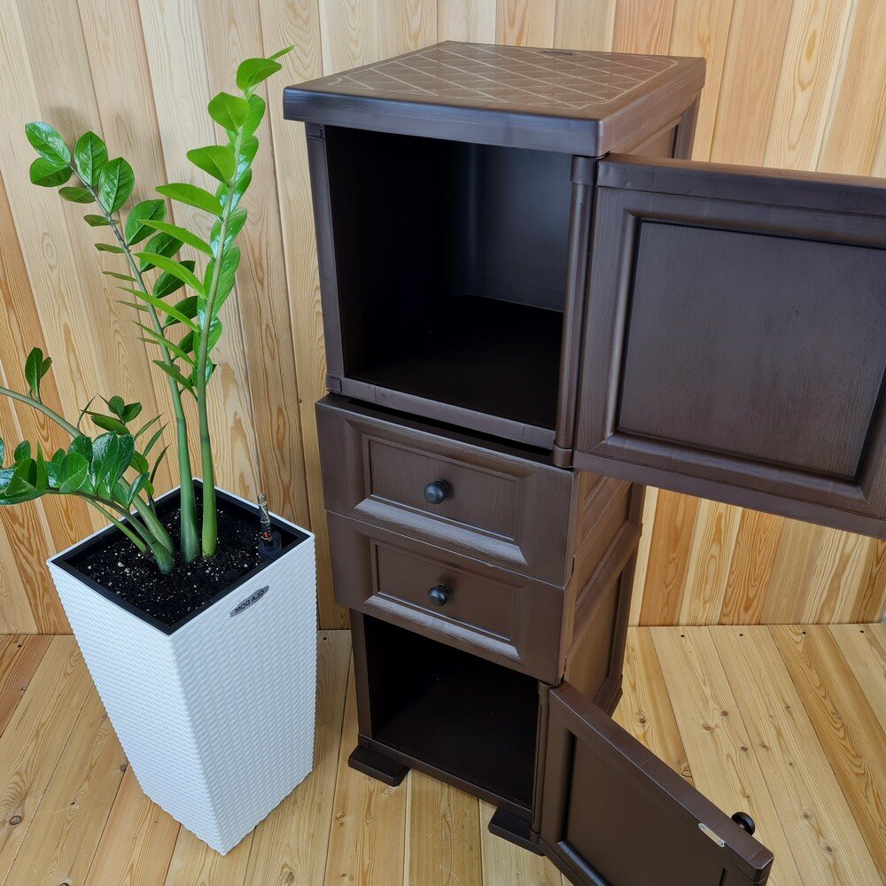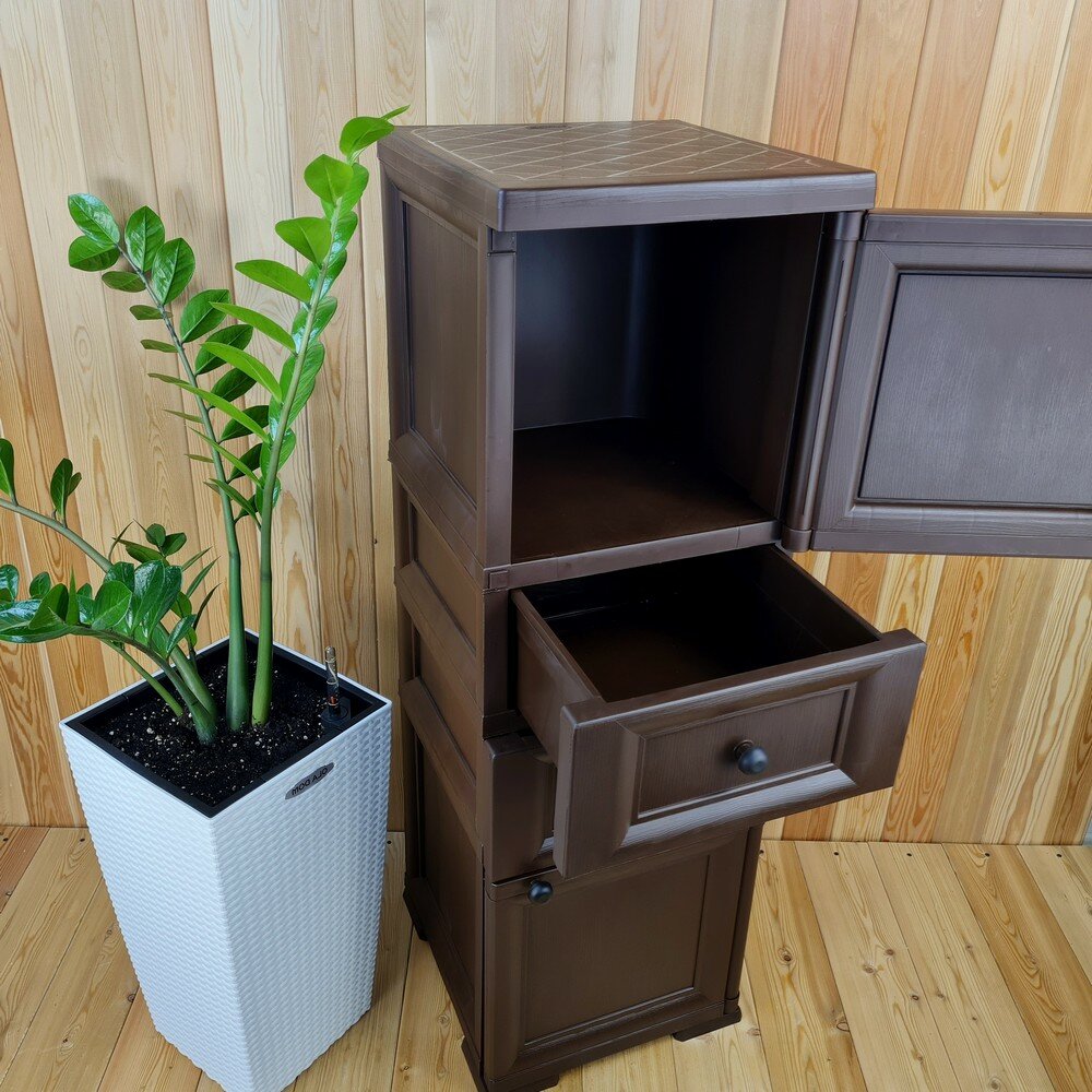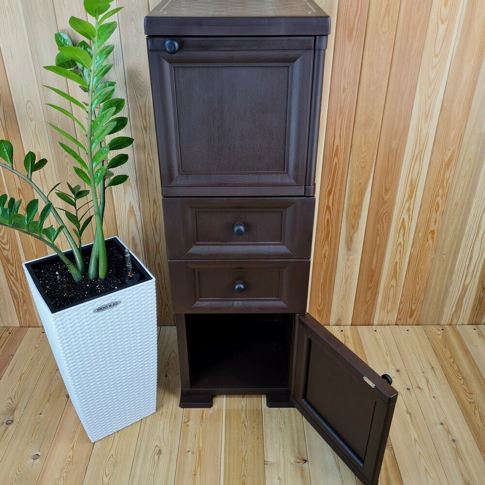 Тумба "УЮТ" пластиковая, усиленная, 40,5х42х122,5 h, 2 ящика, 1 дверца высокая. Цвет: Коричневый. Арт: Э-081-Д