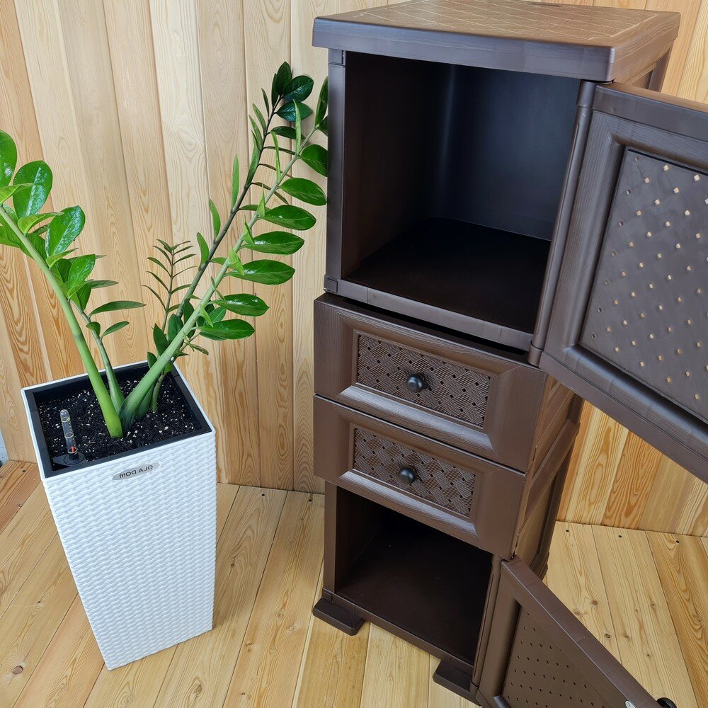 Тумба "УЮТ" пластиковая, усиленная, 40,5х42х122,5 h, 2 ящика, 1 дверца высокая. Цвет: Коричневый. Арт: Э-081-Д