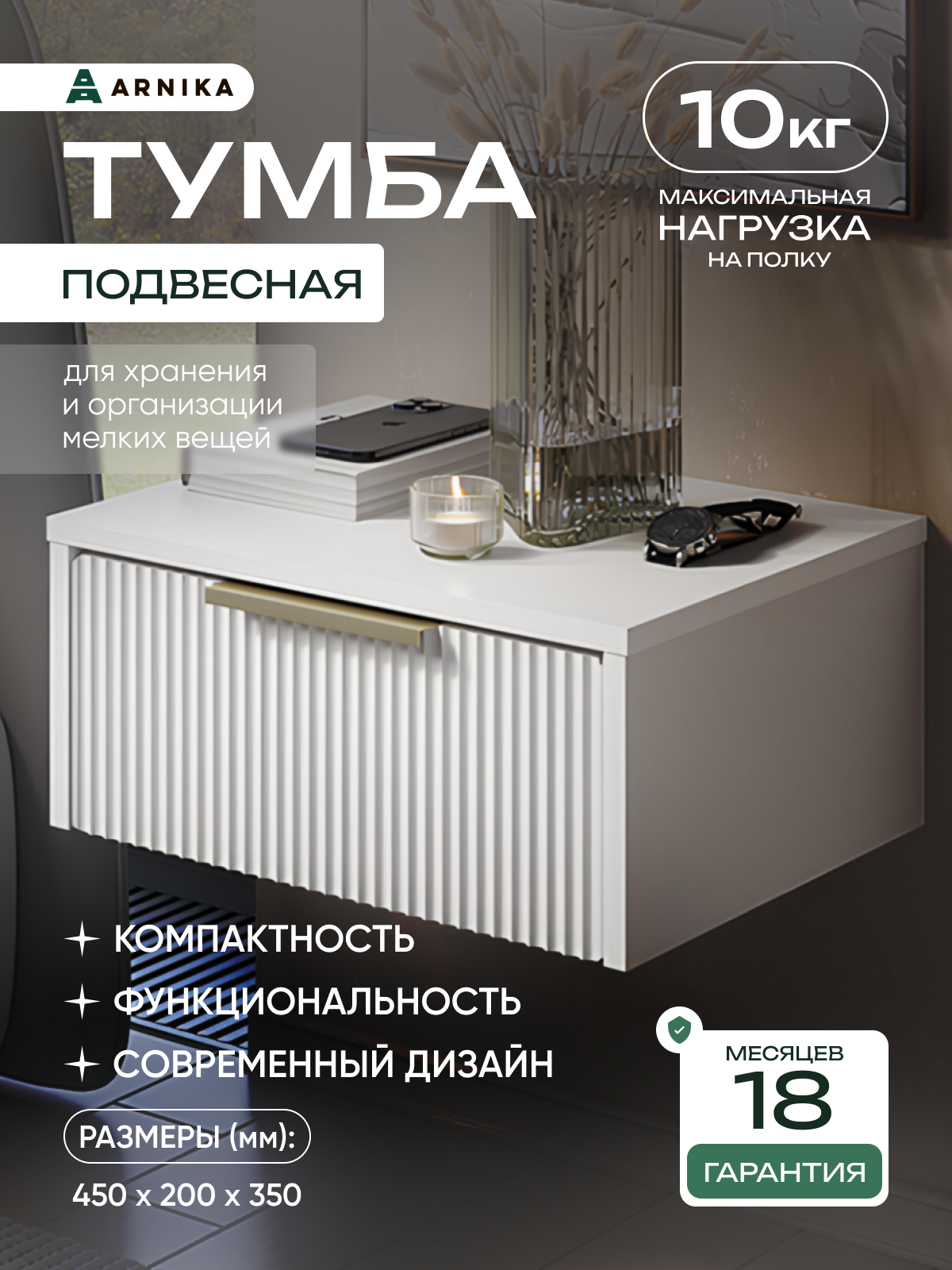 Тумба ARNIKA "Хилл", подвесная, ЛДСП, цвет белый, 20 см x 45 см x 35 см интересное: