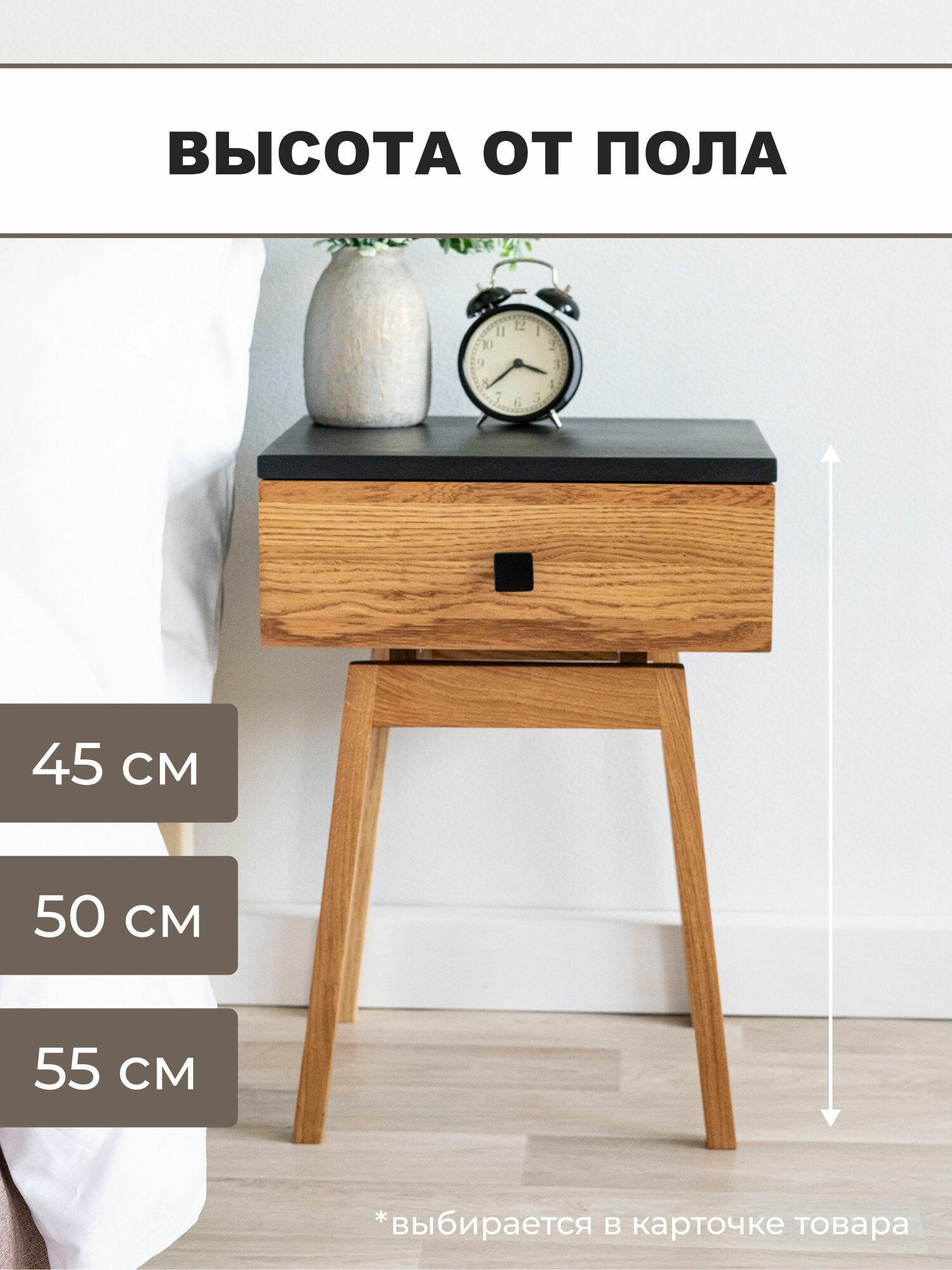 Тумба прикроватная Hugo из натурального дерева. Высота 45 см. Парящий корпус 30х39х15 см. Цвет: натуральный, черный.