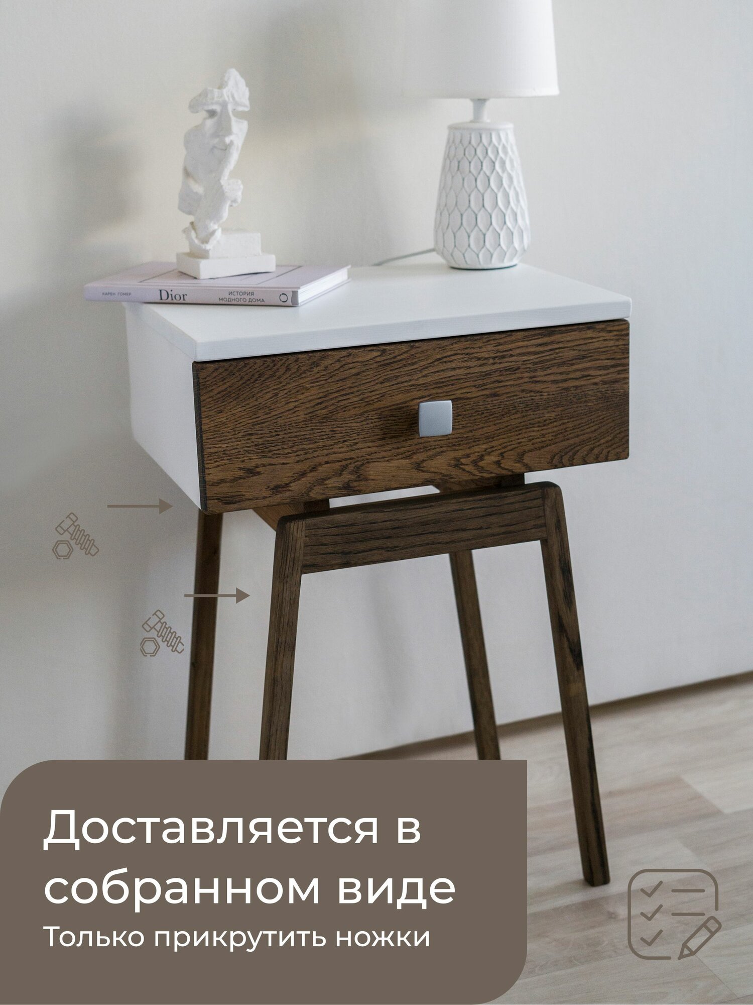 Купить Тумба прикроватная Hugo из натурального дерева. Высота 45 см. Парящий корпус 30х39х15 см. Цвет: эбен, белый.